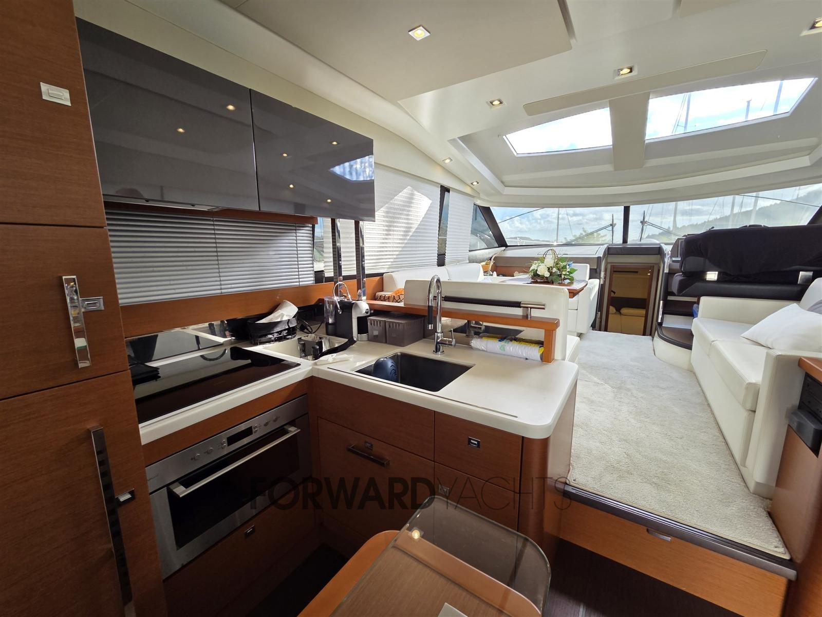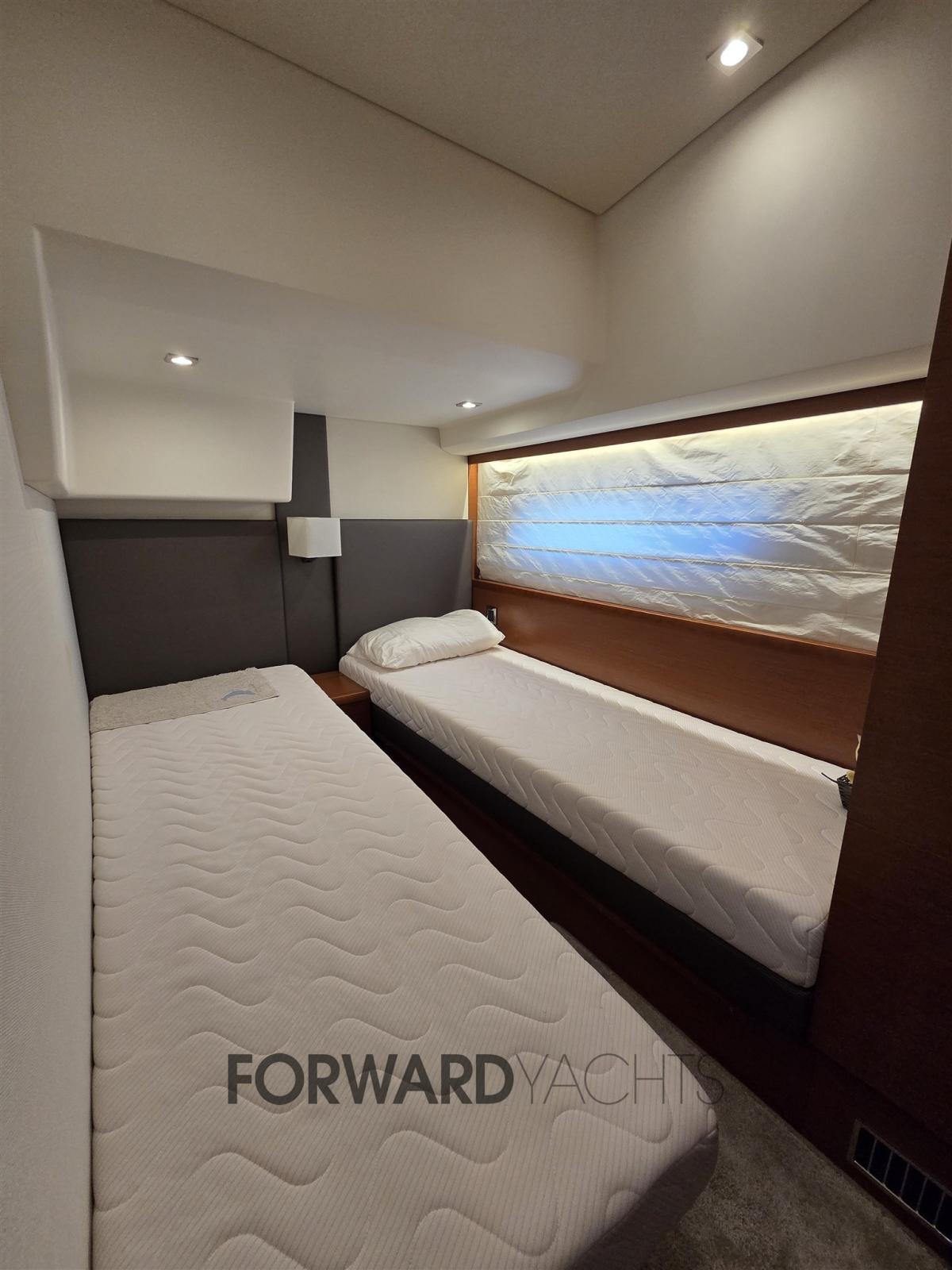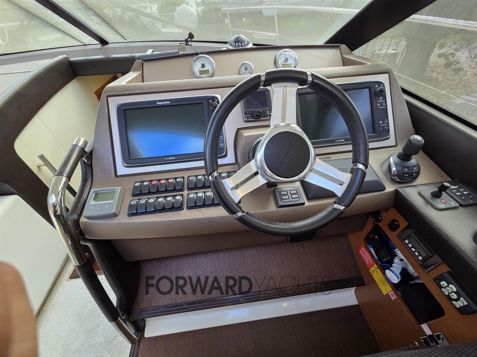 Propulsé par deux moteurs Volvo IPS 600 de 435 ch chacun, il offre une tenue de route fluide au joystick et une excellente efficacité de croisière.
