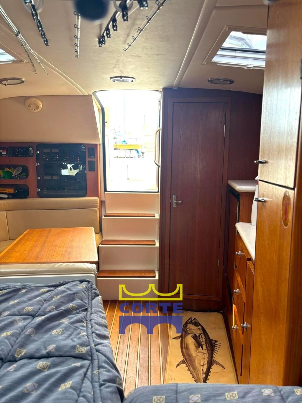 Alarme moteur, Alarme de pompe de cale, Eau sous pression, Douche de cockpit, Phare de poursuite, Hard top, Extincteur(s) fixe(s), Lavabo dans le cockpit, Plateforme arrière (di poppa), Pompe de cale automatique, Guindeau électrique, Echelle de bain, Corne.