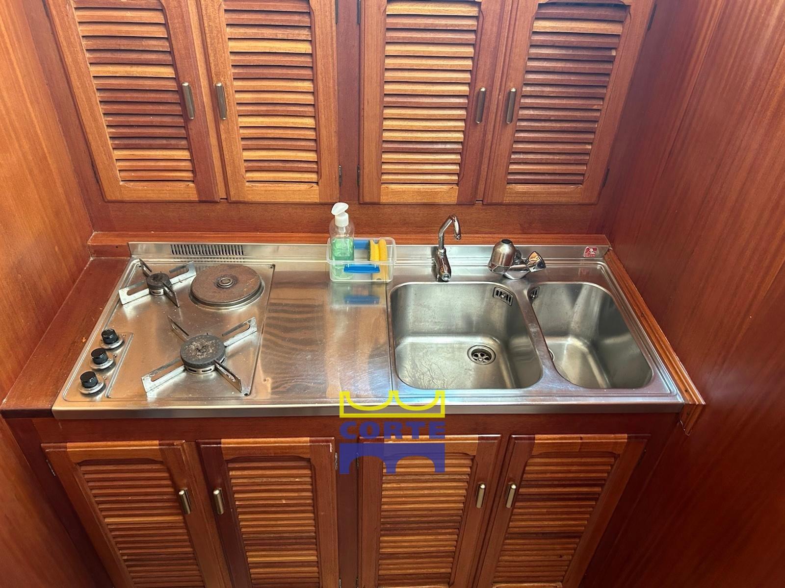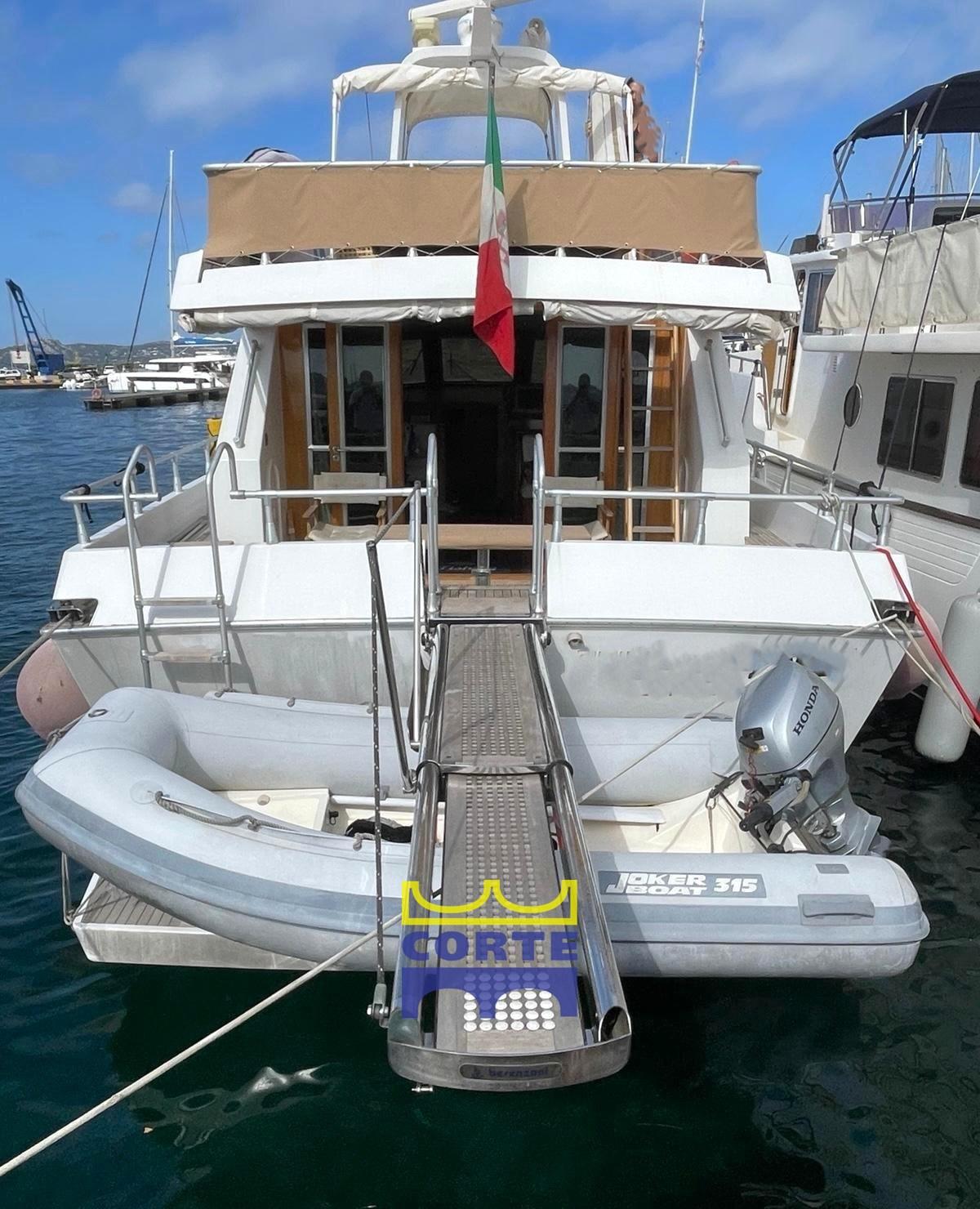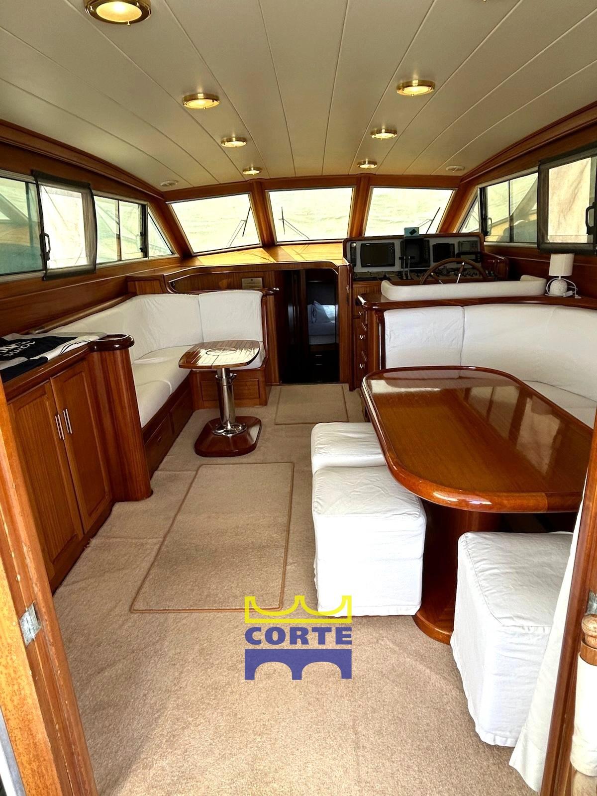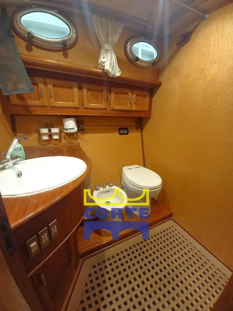 Alarme moteur, Alarme de pompe de cale, Eau sous pression, Système de vidange, Passavant en teck, Douche de cockpit, Double barre à roue, Phare de poursuite, Flaps hydrauliques, Bossoirs pour annexe (passerella idraulica), Extincteur(s) fixe(s), Passerelle (elettroidraulica), Plateforme arrière (poppa in teak), Pompe de cale automatique, Porte latérale, Cockpit en teck, Prise de quai, Connexion eau sous pression à quai, Guindeau électrique, table de cockpit (regolabile in altezza e movibile verso prua), Annexe, Corne, 2 Winch électrique arrière, Winch électrique avant.