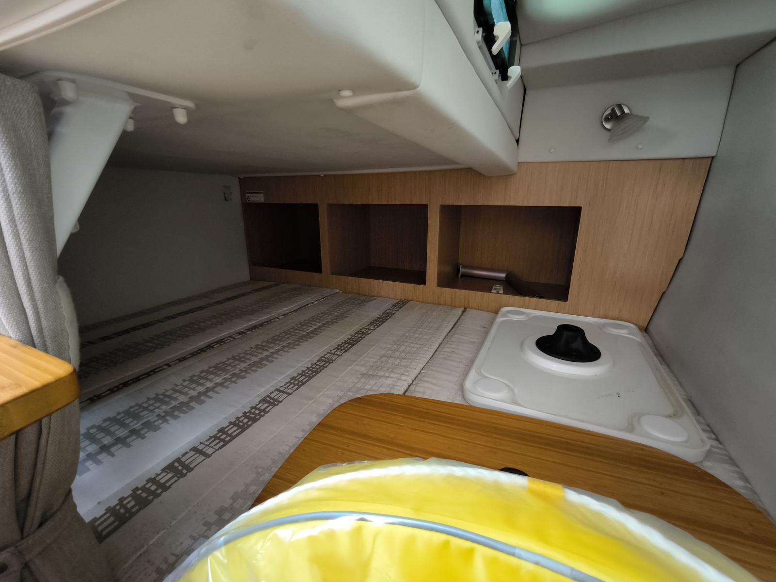 Cabine luxueuse avec des finitions de qualité pour des nuits à bord tout confort.