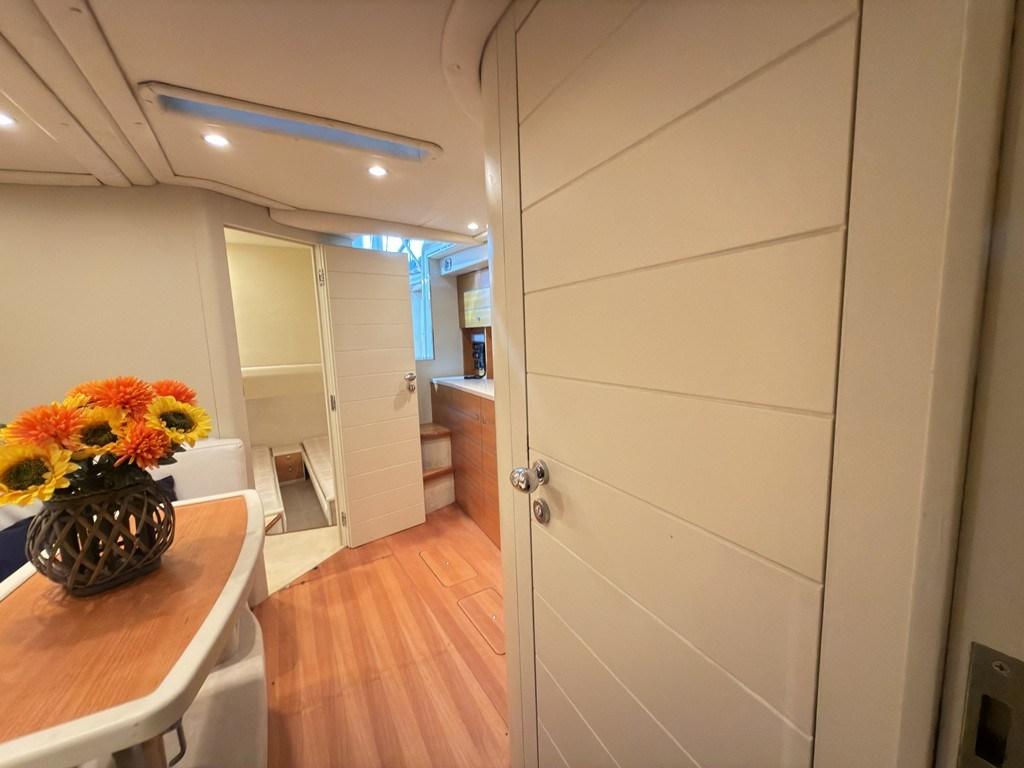Eau sous pression, Câble d’alimentation à quai, Couleur spéciale (Fascia blu nelle fiancate), Douche de cockpit, Flaps électriques, Lavabo dans le cockpit, Éclairage de courtoisie, Passerelle (a scomparsa), Cockpit en teck, Prise de quai, Guindeau électrique.