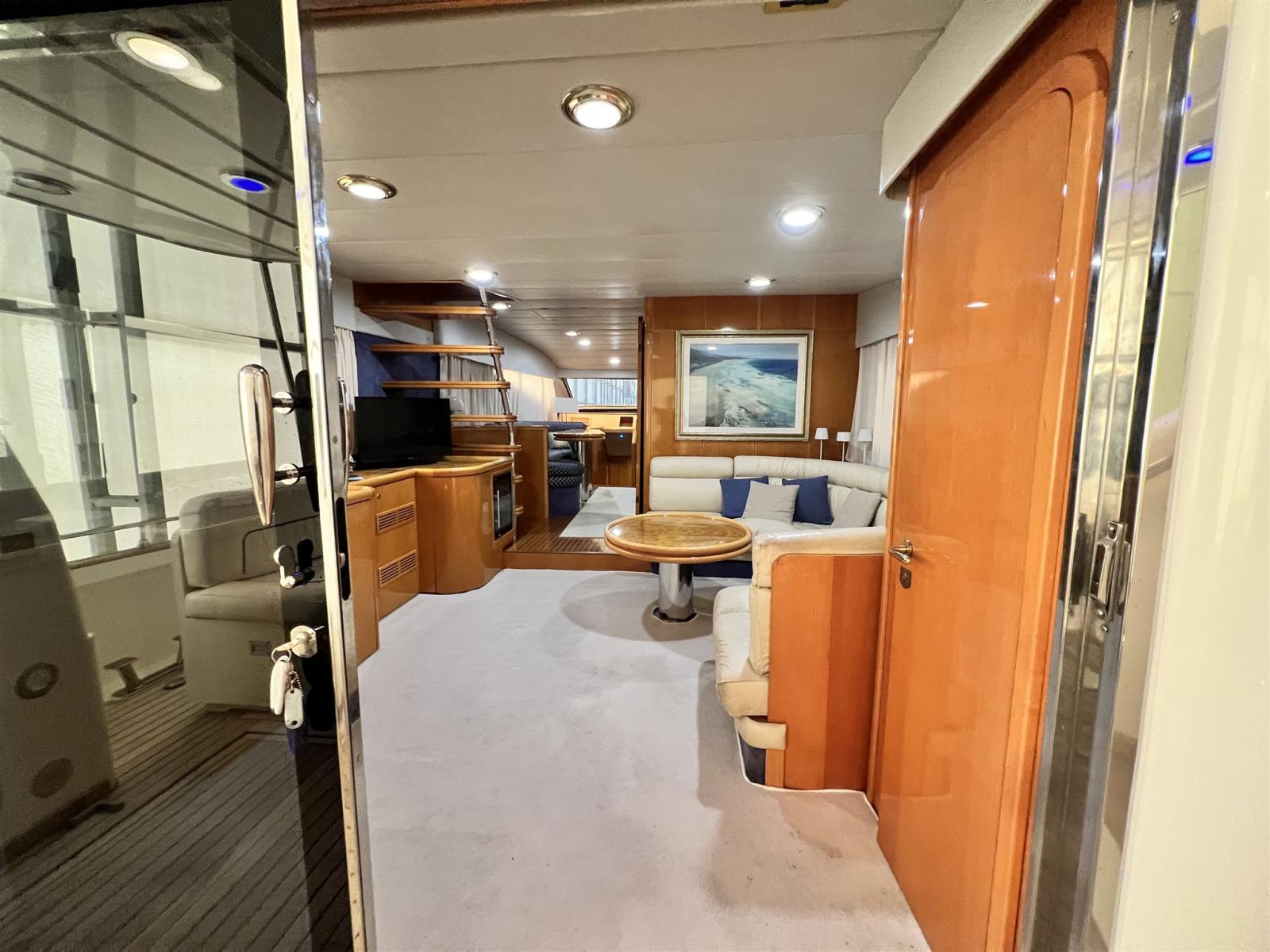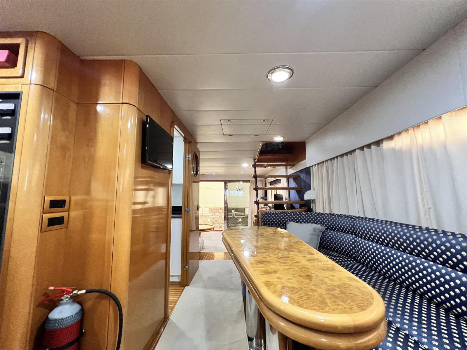 Alarme moteur, 2 Ligne d'arbre de rechange, Eau sous pression, Batteries (2022), Passavant en teck, 2 Chargeur de batterie (2022), Douche de cockpit, Propulseur de poupe (revisionata), Propulseur d'étrave (revisionata), Phare de poursuite, Flaps hydrauliques, Extincteur(s) fixe(s), Indicateurs de flaps (con impianto nuovo 2022), Éclairage de courtoisie, Passerelle (telescopica), Plateforme arrière, Pompe de cale automatique, Pompe de cale manuelle, Cockpit en teck, Prise de quai, 2 Onduleur (2022), Rollbar (con fari nuovi), Guindeau électrique (revisionato con catena nuova), Echelle de bain, table de cockpit, Annexe, 3 Winch.