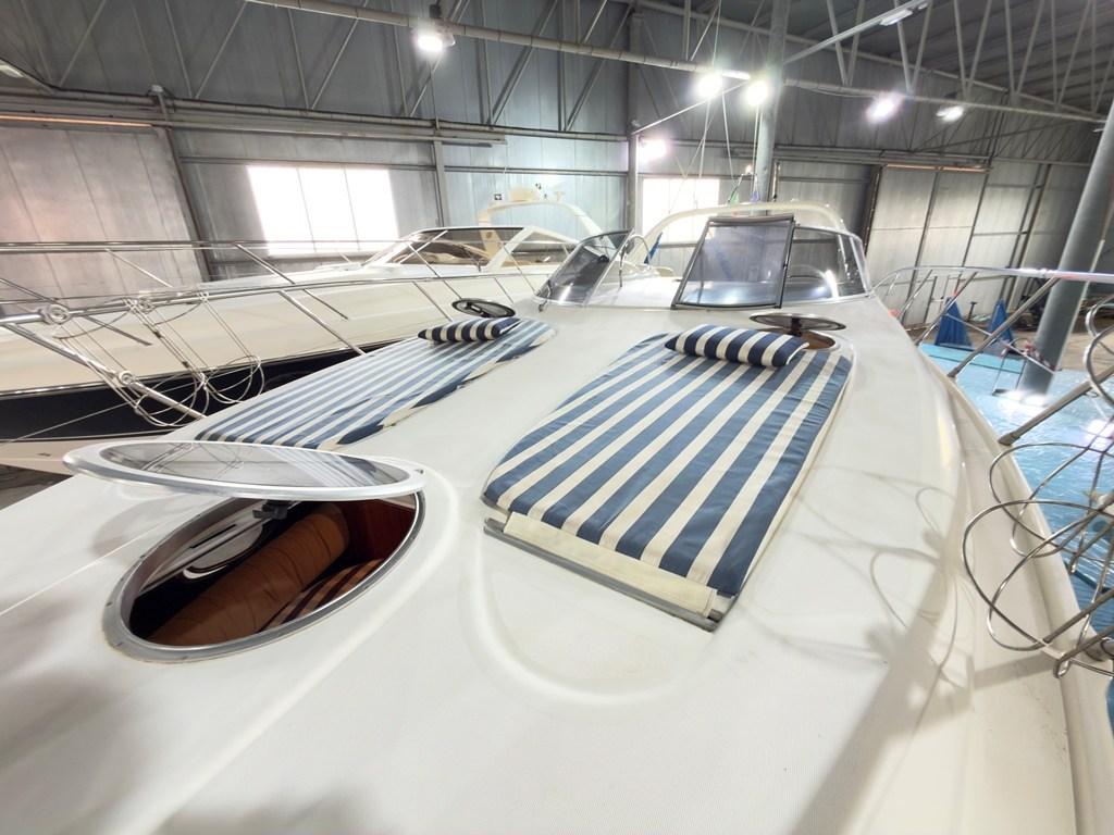 Câble d’alimentation à quai, Flaps électriques, Spots sous-marins, Passerelle (Idraulica), Plateforme arrière (con fondo in Teak), Prise de quai, Guindeau électrique.