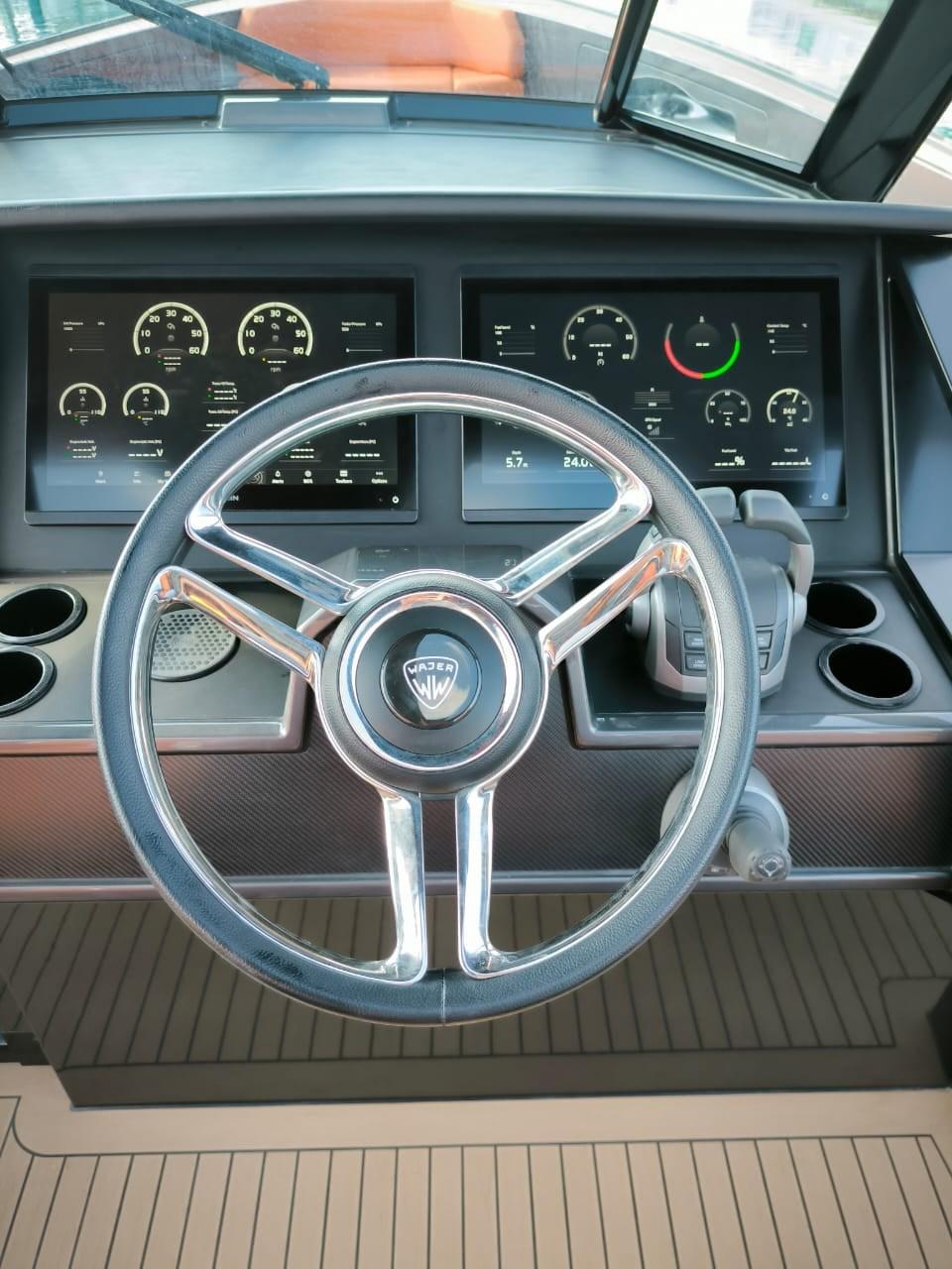Le concept de console centrale offre plus d’espace pour marcher, parler et se détendre sur le pont. Il en va de même pour les ponts inférieurs, où il y a de la place pour dormir jusqu’à quatre personnes, et une salle de bain entièrement équipée. Le grand espace de rangement pour les équipements de sport ajoute encore à la facilité d’utilisation du Wajer 55 S.
