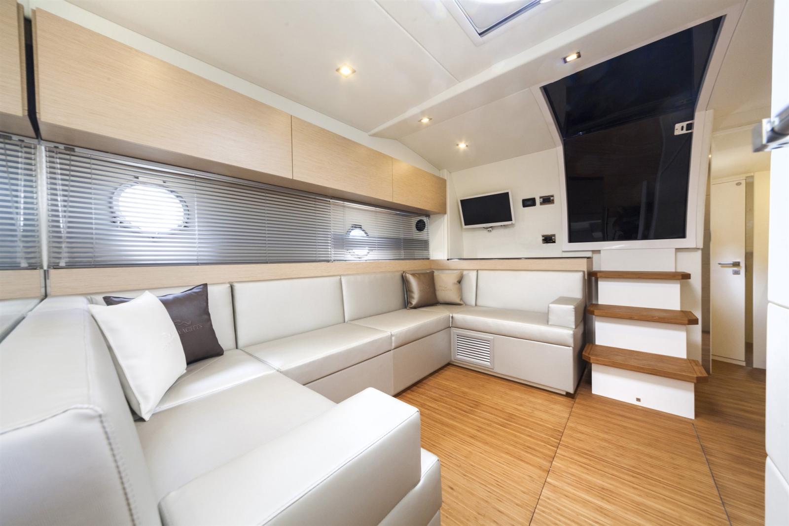 Un intérieur lumineux et spacieux L’intérieur du Rio Yacht Paraná 38 est un véritable havre de paix, conçu pour offrir un maximum de confort et de fonctionnalité. Les deux cabines spacieuses offrent des couchages confortables et sont idéales pour accueillir la famille et les amis lors de séjours prolongés. Chaque cabane est baignée de lumière naturelle grâce à de grandes fenêtres, créant une atmosphère chaleureuse et accueillante.