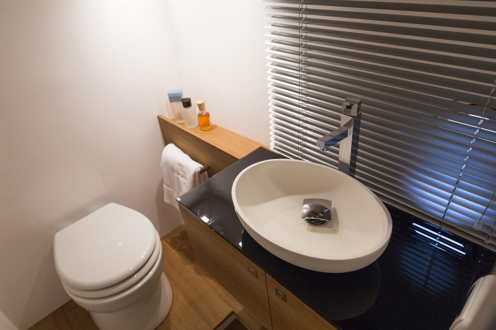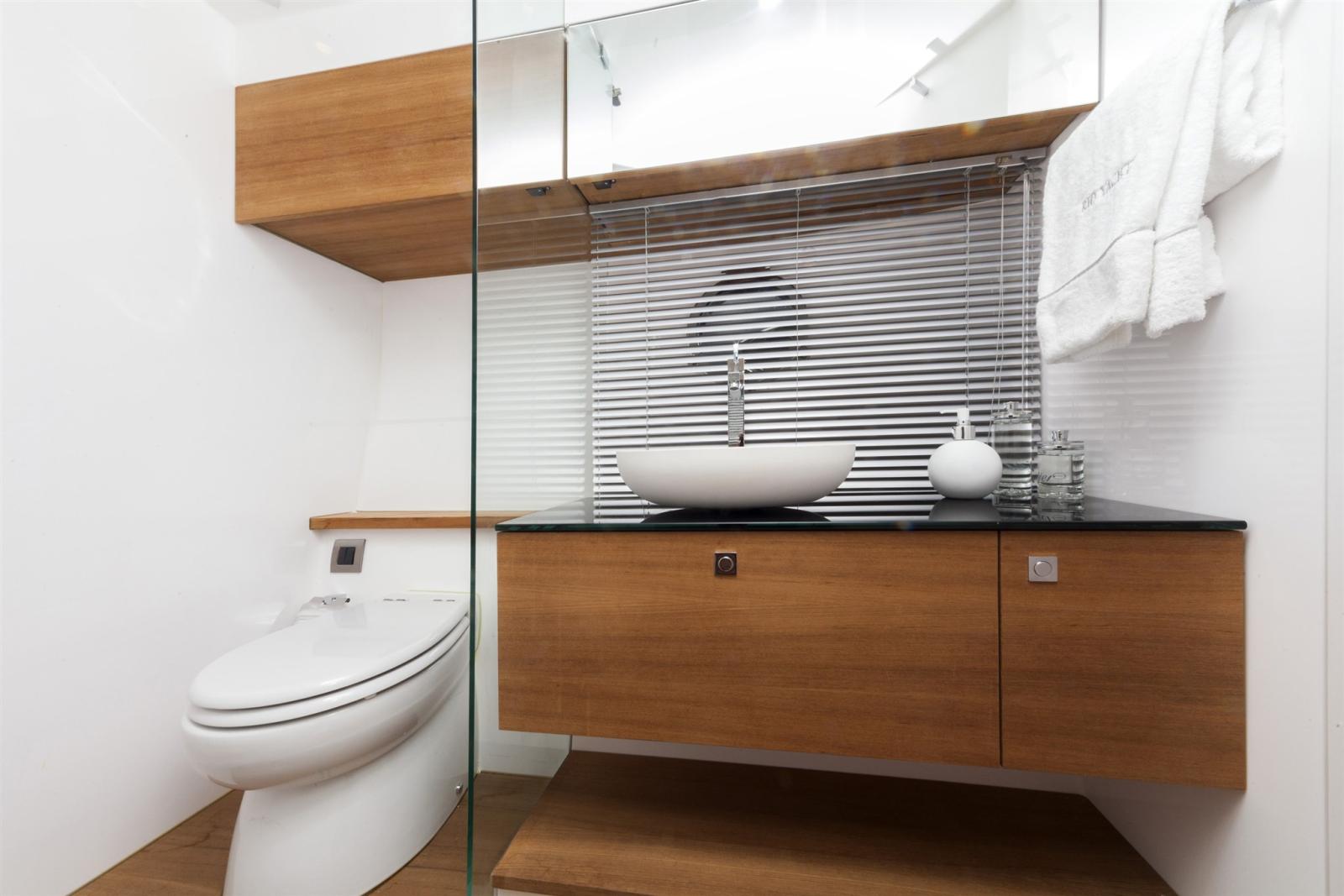 Les deux salles de bains privées sont également bien équipées, assurant intimité et commodité pour tous les passagers. Des finitions haut de gamme et un agencement intelligent contribuent à créer un espace intérieur élégant et fonctionnel.