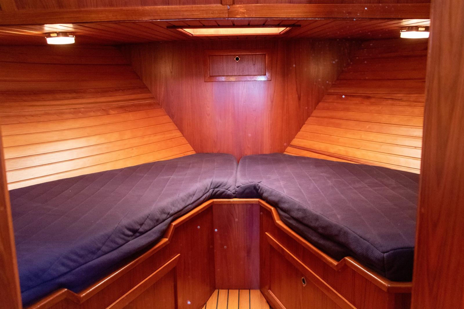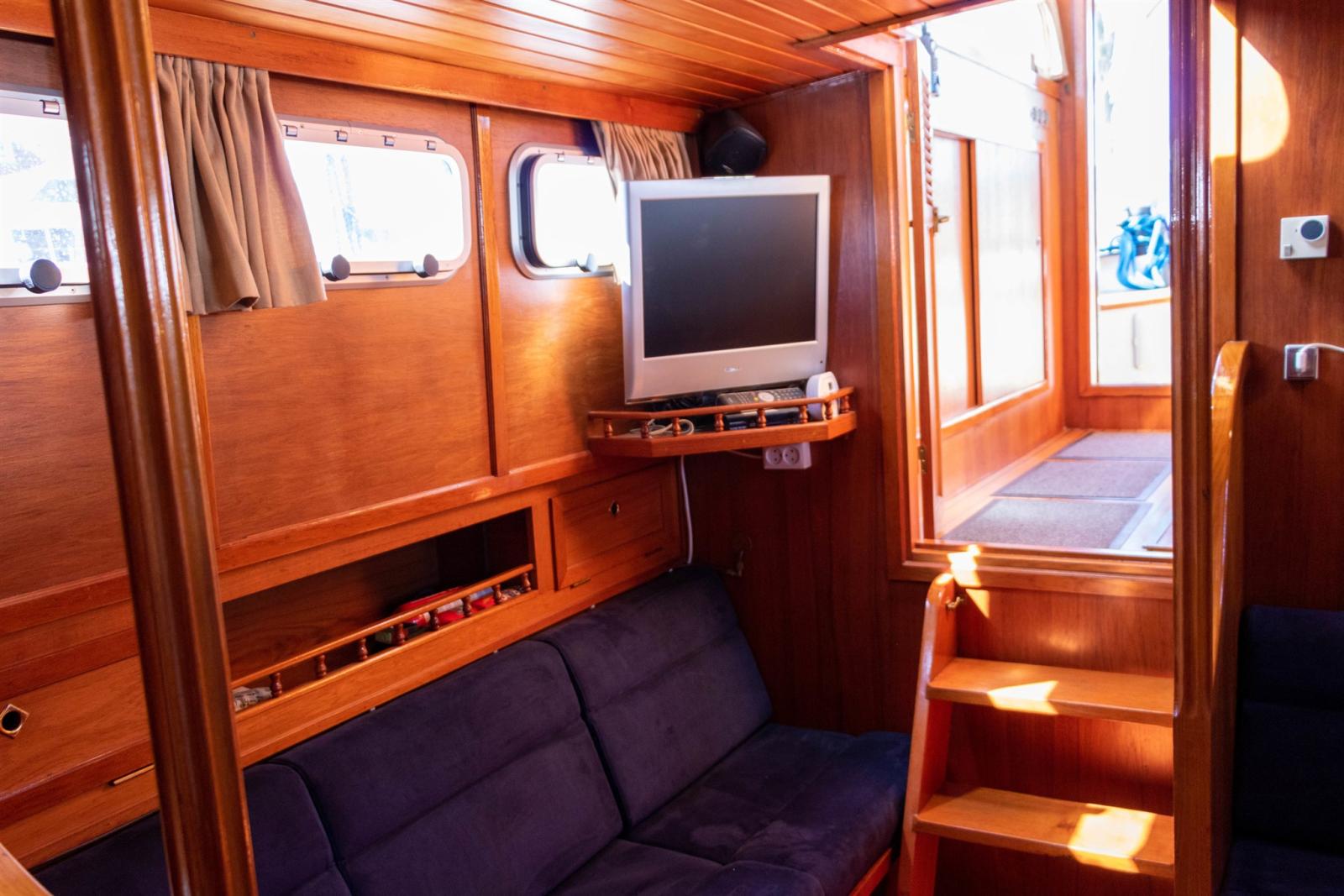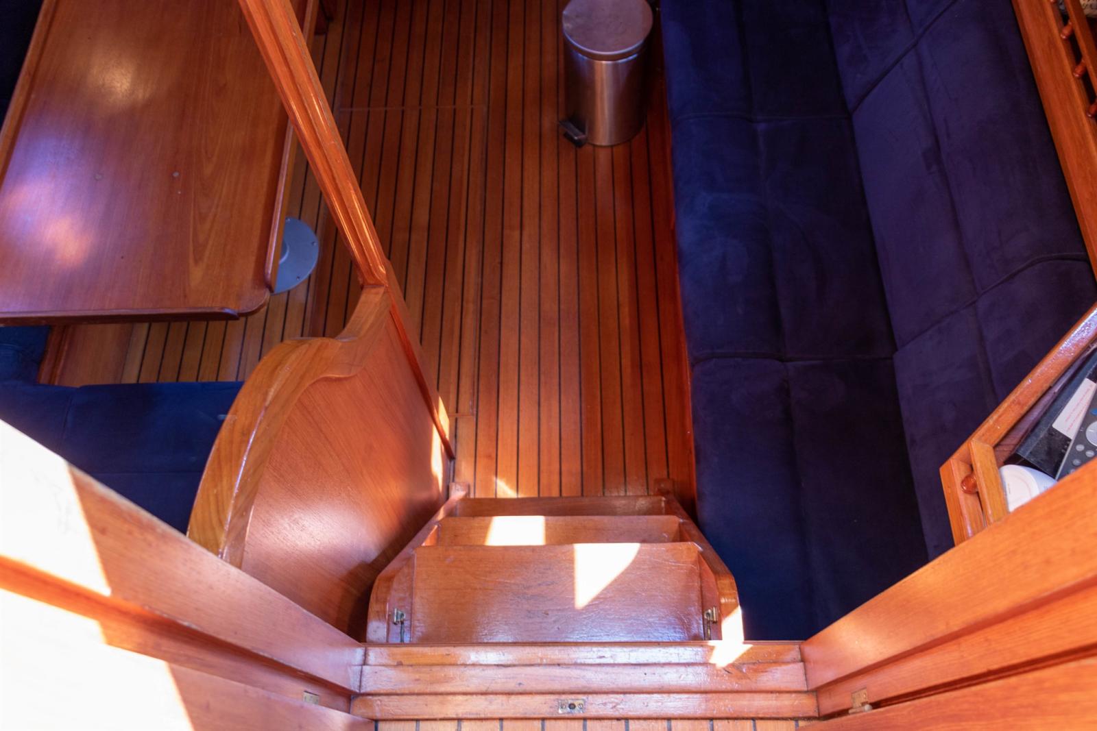 Un joli cotre de 1978. Construit dans le célèbre chantier Staverse de Volharding. Le Staverse Cutter est connu pour sa construction solide et son grand confort. La timonerie offre une visibilité et une luminosité optimales. En outre, un vaste espace pour s'asseoir au milieu du navire est doté de grandes fenêtres. Sur le gaillard d'avant, la cabine du propriétaire est spacieuse et dispose de nombreux placards. La hauteur sous barrots de 1,95 m et la cuisine spacieuse avec cuisinière à 3 feux et réfrigérateur sont également appréciables. L'intérieur en teck dégage une impression de confort en combinaison avec le revêtement bleu. Le bateau a fait l'objet de beaucoup d'attention de la part de son propriétaire au cours des dernières années, et les principaux éléments suivants ont été renouvelés :
