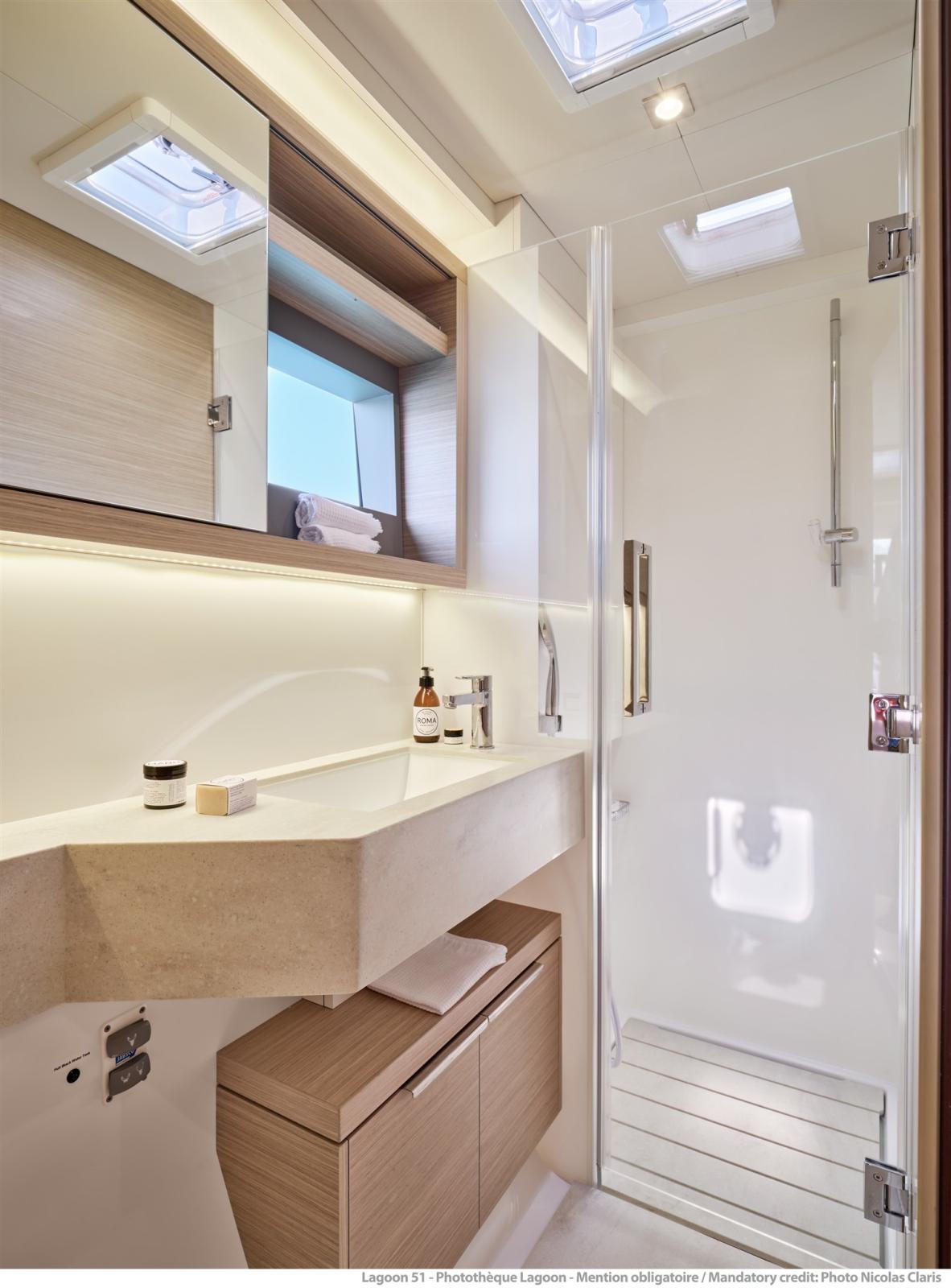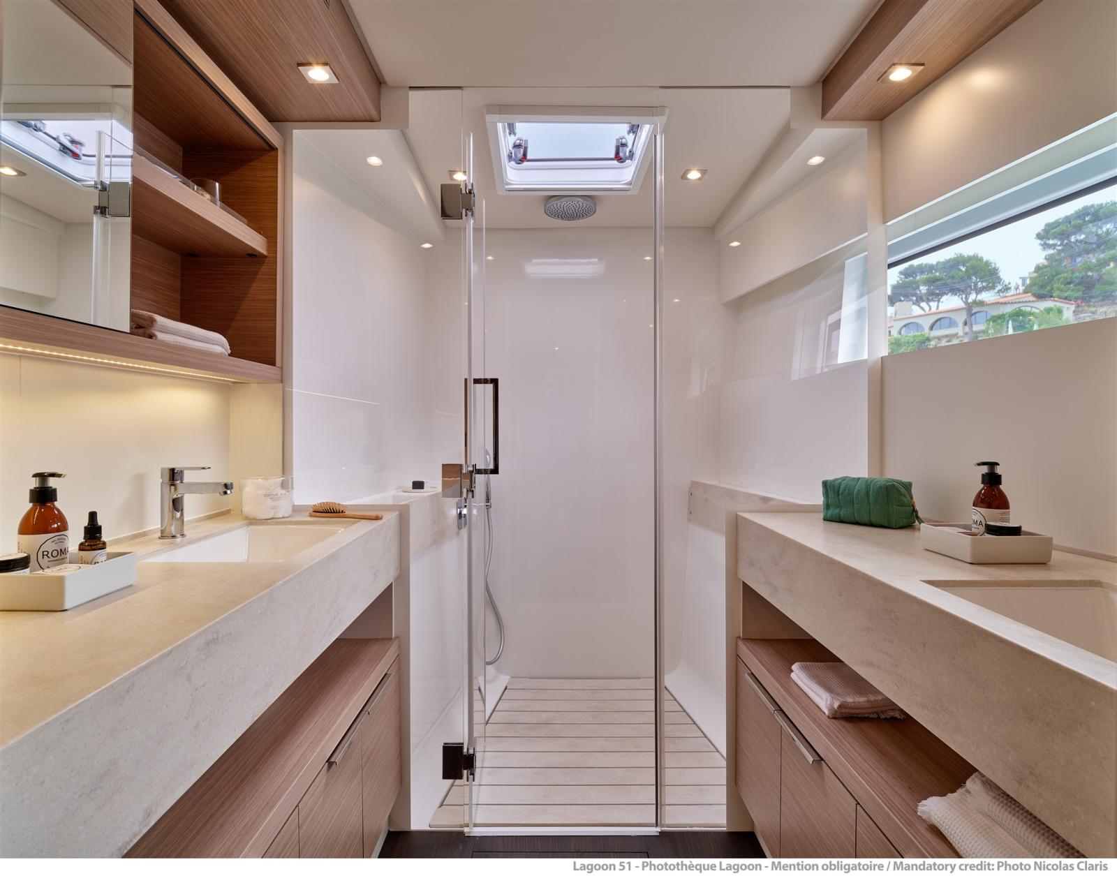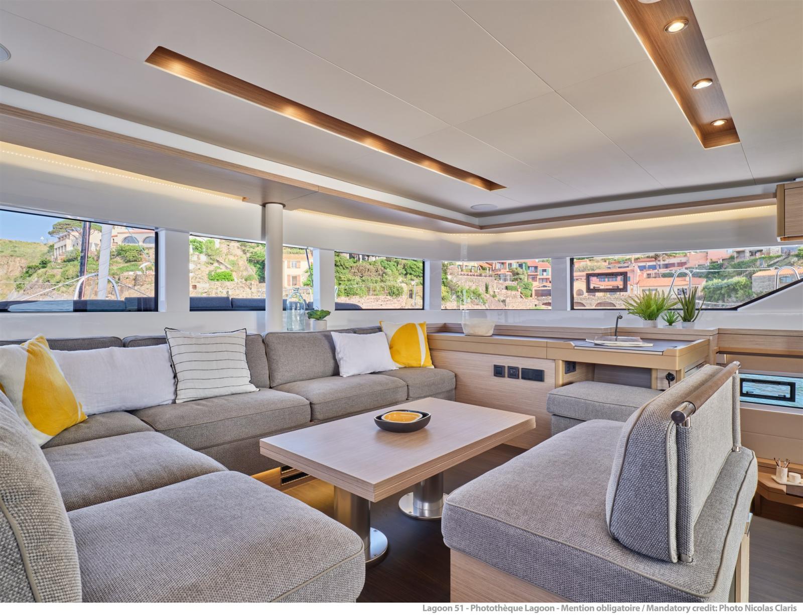 Les équipes Lagoon se sont réinventées pour répondre aux exigences de la nouvelle génération de propriétaires. Lagoon 51 offre des options de panneaux solaires XXL sur le toit. Cette technologie fournit plus de 3 400 watts de puissance pour faire fonctionner le service à bord. Le bateau est donc complètement autonome (sauf pour la climatisation). Les panneaux solaires s'intègrent parfaitement aux lignes du catamaran et ne gênent pas la vie à bord. Le flybridge et les pare-soleil sur le toit sont toujours accessibles et utilisables même avec les panneaux en place.