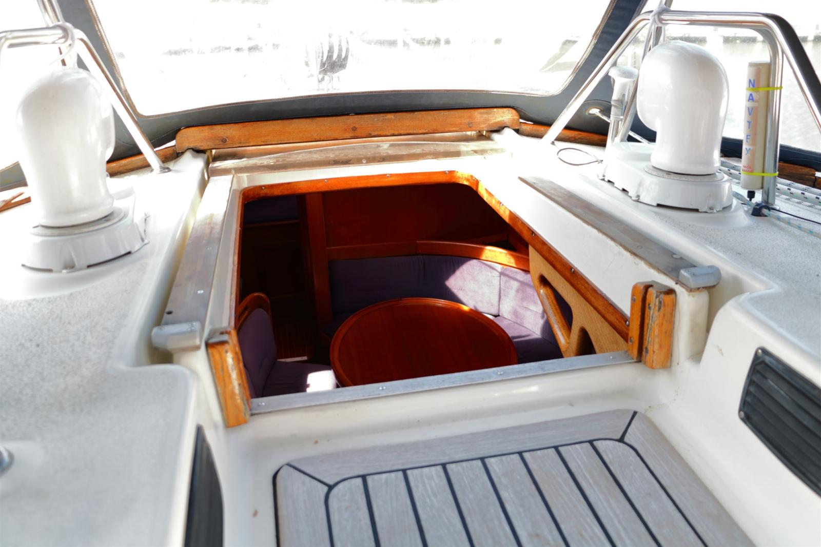Eau sous pression, Batteries (2x service accu 120AH (2024) Startaccu (2018)), Passavant en teck, Douche de cockpit (2023), Plateforme arrière, Pont en teck (2009), Cockpit en teck, Echelle de coupée, table de cockpit.
