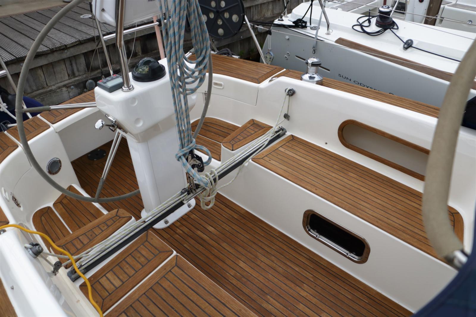 2 Ancre (1 x Bruce 1 x paraplu), Batteries (2024), Chargeur de batterie (2022), Douche de cockpit, Plateforme arrière, Cockpit en teck, Prise de quai, Gréement monotoron (2025), Echelle de coupée, Echelle de bain, Chaise support HB, Annexe (Lodestar NSA260), Filières avec sortie latèrale, Winch (Selftailing).