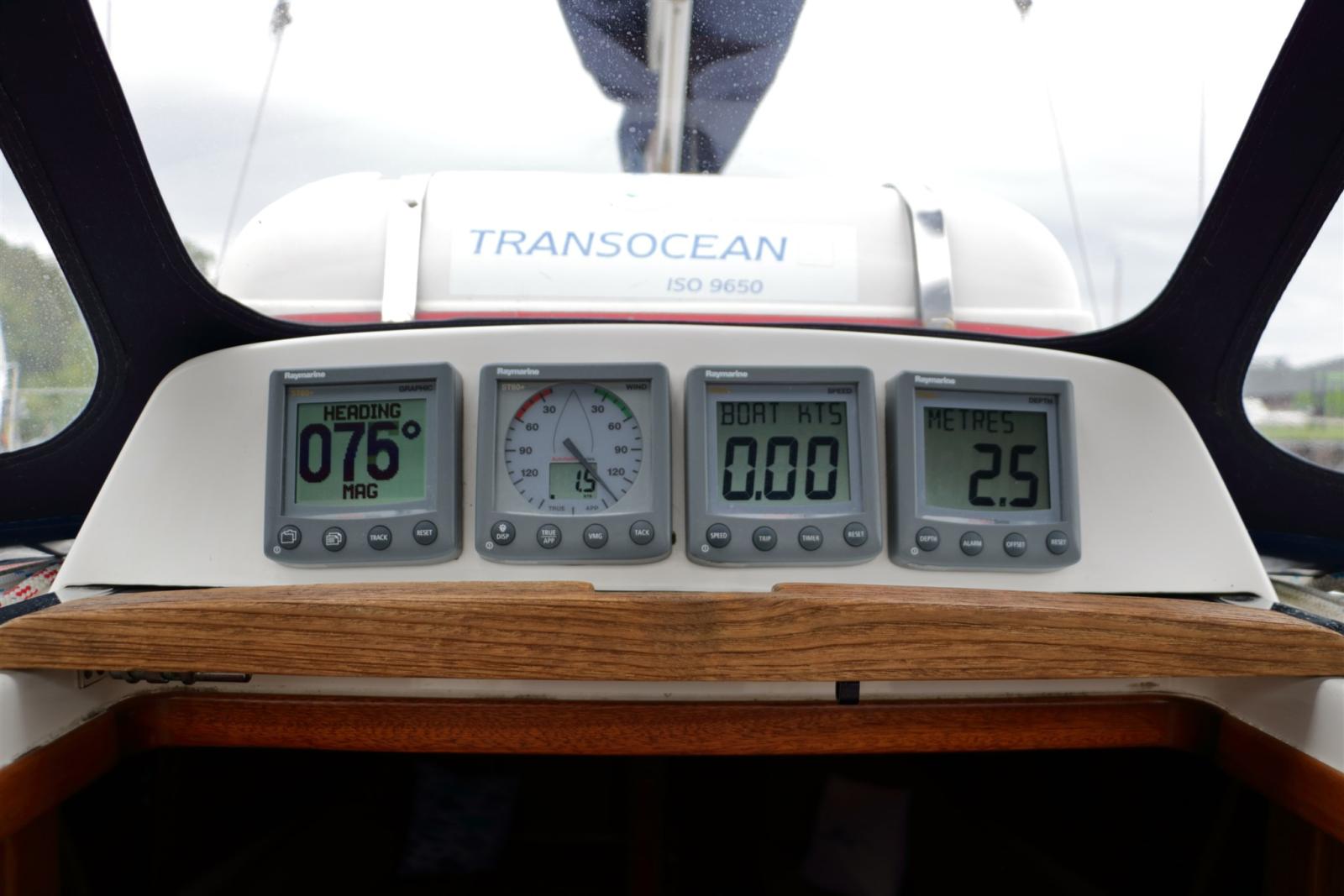 AIS, Indicateur d'angle de barre, Loch (Raymarine snelheid en temperatuur transducer 2025), Radio VHF (2de draadloze handset met oplader in droogkast en hand marifoon2 x Raymarine ST 60+ repeater binnen en buitenShipmodul Miniplex voor aansluiting op laptop 2025).
