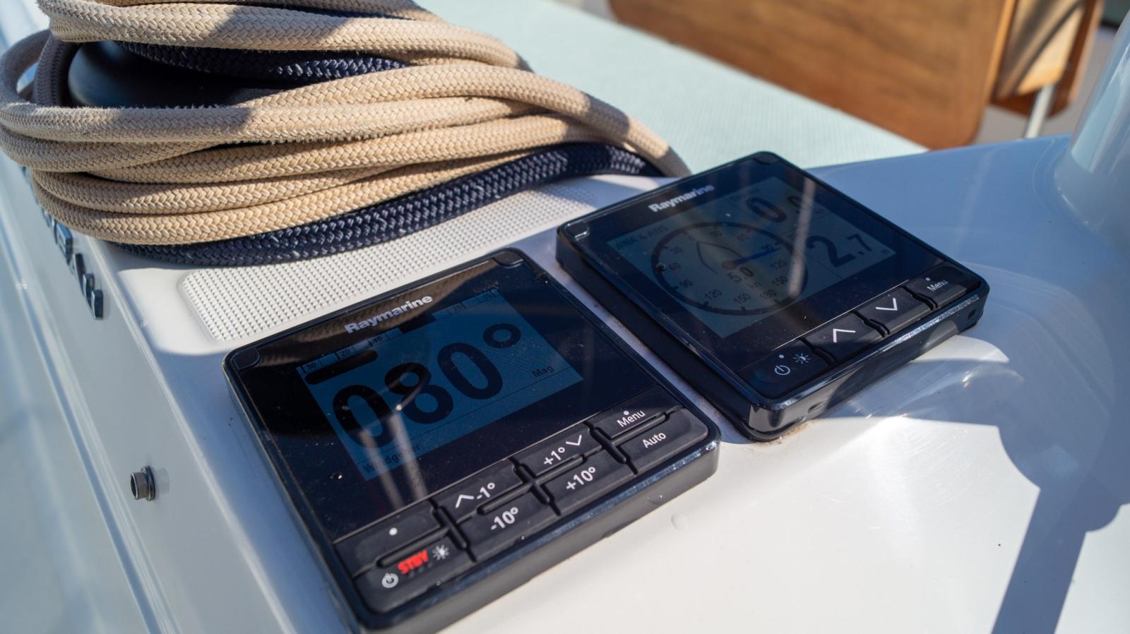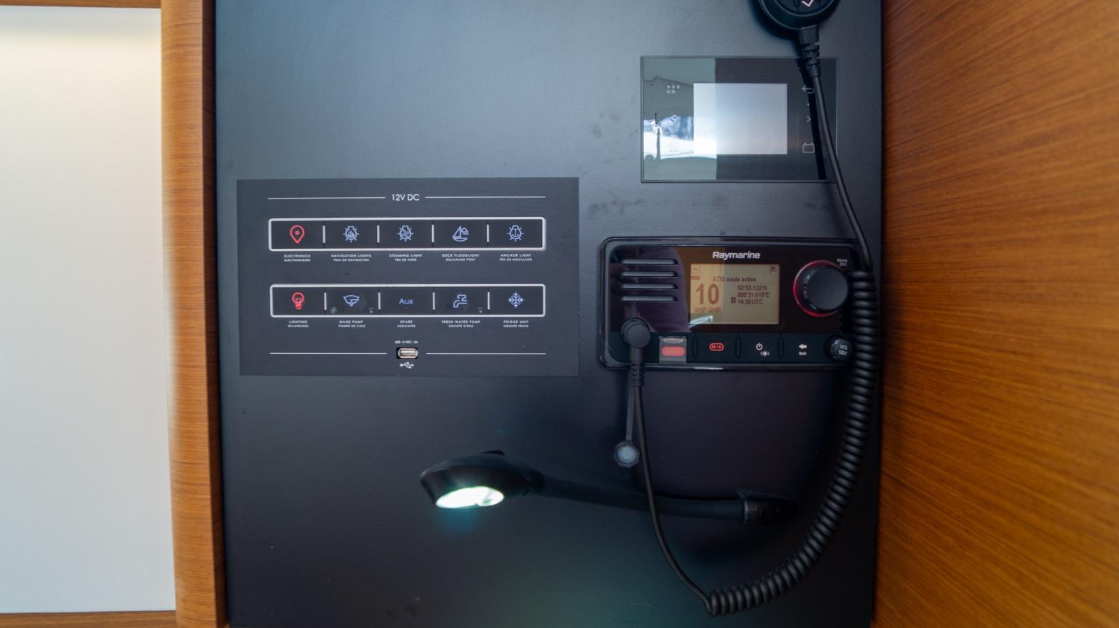 AIS (Raymarine AIS700), Sondeur pêche (Raymarine I70 display), Pilote automatique (Raymarine p70s autopilot met ACU400 + gyrokompas), Lecteur de cartes (Raymarine AXIOM 7), Radio VHF (Raymarine RAY63 marifoon met handheld en speaker).