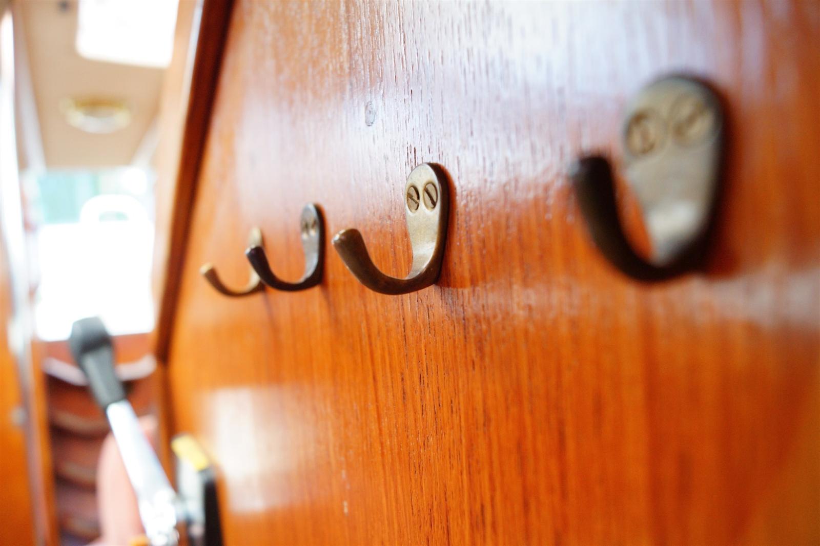 Ancre (Boeg en hek anker), Câble d’alimentation à quai, Filères, Filière, Fixation de l’ancre (Ketting), Défenses, Plateforme arrière, Pompe de cale manuelle, Prise de quai, Guindeau manuel, table de cockpit, Winch (Handmatige lieren).