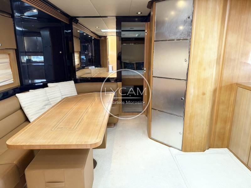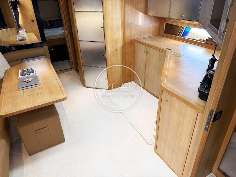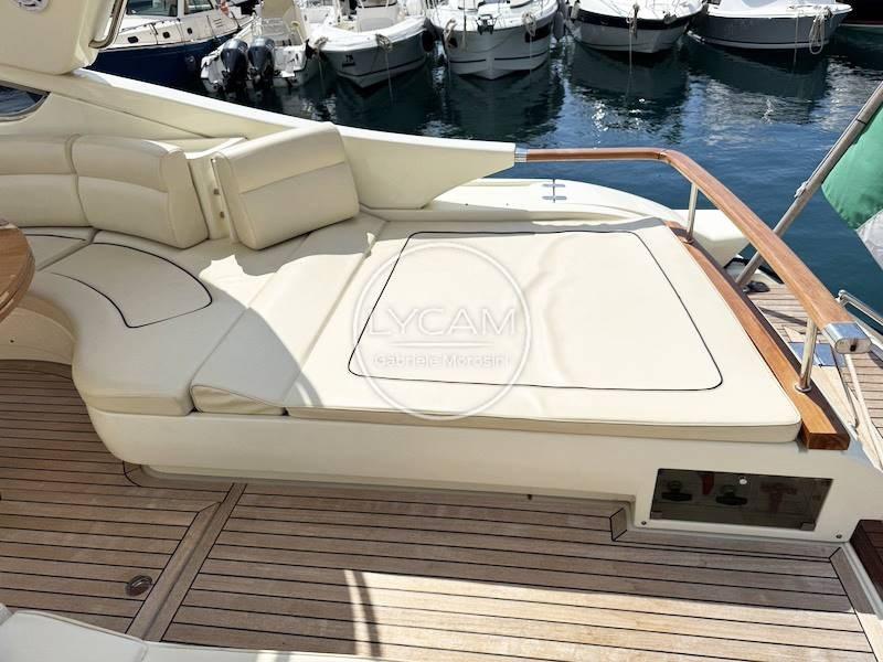 Par la plateforme arrière, vous entrez dans le cockpit volumineux avec double pont solaire protégé par de élégantes rampes en acajou. La dinette extérieure en forme de L est positionnée sur tribord tandis que de l’autre côté, une armoire cache la descente vers la cabine d’équipage. En avançant vers la proue, on trouve le meuble à barres (évier + plaque de brûleur) et la timonerie confortable avec siège pour le pilote et les passagers. À la proue du pont, il y a un vaste abri de soleil orné de rambardes en acajou raffiné. L’accès au pont inférieur se trouve à gauche de la station de pilotage et, une fois descendu, vous êtes immédiatement accueilli dans une dinette lumineuse et accueillante à gauche, avec une cuisine de l’autre côté. À l’étrave se trouve la cabine d’amis avec lit double et salle de bain attenante ; tandis que la cabine du propriétaire avec la salle de bain principale attenante a été positionnée à l’arrière.