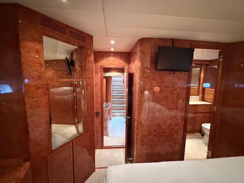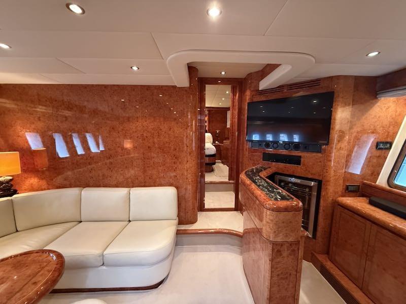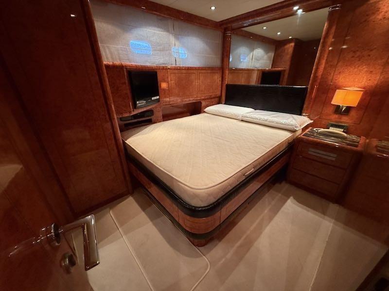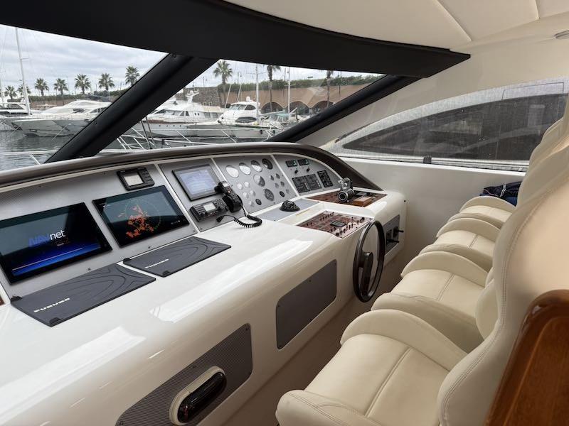 Alarme de pompe de cale, Alternateur, Ouverture du compartiment moteur électrique, Eau sous pression, 16 Batteries, Câble d’alimentation à quai, Filères, Douche de cockpit, Phare de poursuite, Flaps hydrauliques, Garage à annexe, Bossoirs pour annexe, Hard top, Extincteur(s) fixe(s), Indicateurs de flaps, Lavage de chaine, Lavabo dans le cockpit, Éclairage de courtoisie, Spots sous-marins, Moteur hors-bord pour annexe, Défenses, Passerelle (idraulica Besenzoni), Plateforme arrière, Pompe de Vidange du Réservoir d’Eaux Usées, Cockpit en teck, Prise de quai, Connexion eau sous pression à quai, Onduleur, Rollbar, Guindeau électrique, Echelle de bain, table de cockpit, Annexe (Williams Turbojet), Filières avec sortie latèrale, Corne, 2 Winch.