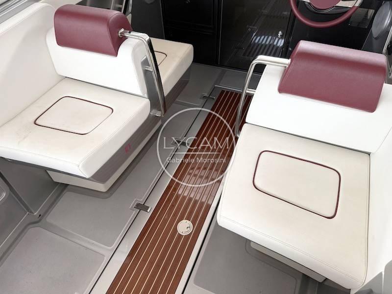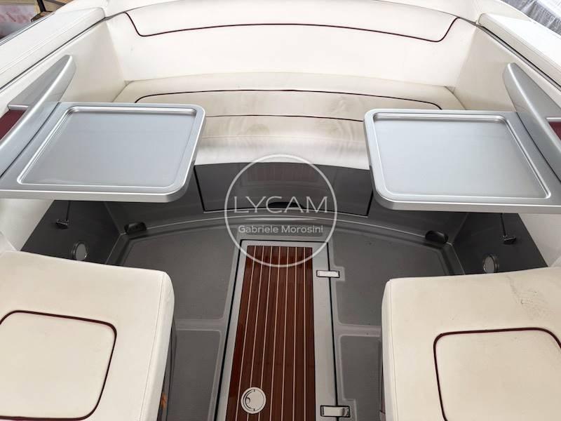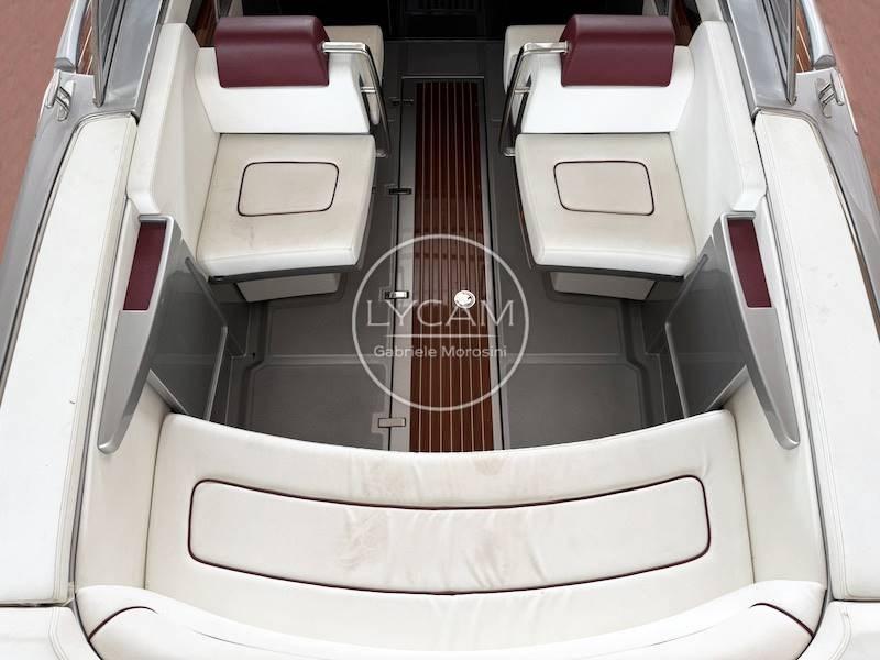Feux de navigation ; Feu d’ancre ; Ancre en acier inoxydable ; Essuie-glaces; Sirène; Mât; Bornes en acier inoxydable ; Rétroviseur intérieur ; Crochet de ski nautique ; plateforme arrière en acajou ; Échelle rétractable pour salle de bain ; Bimini rétractable électrohydraulique ; Coussins/cockpit de bain de soleil à l’arrière ; Haut-parleurs; Couverture de bateau ; Réfrigérateur à tiroir (35 l) ; 2 batteries ; Déconnexion de batterie ; Chargeur; Prise 220V ; Parallèle; Pompe de cale électrique ; Autoclave; Propulseur d’arc ; Demi-marin ; Douche dans le cockpit