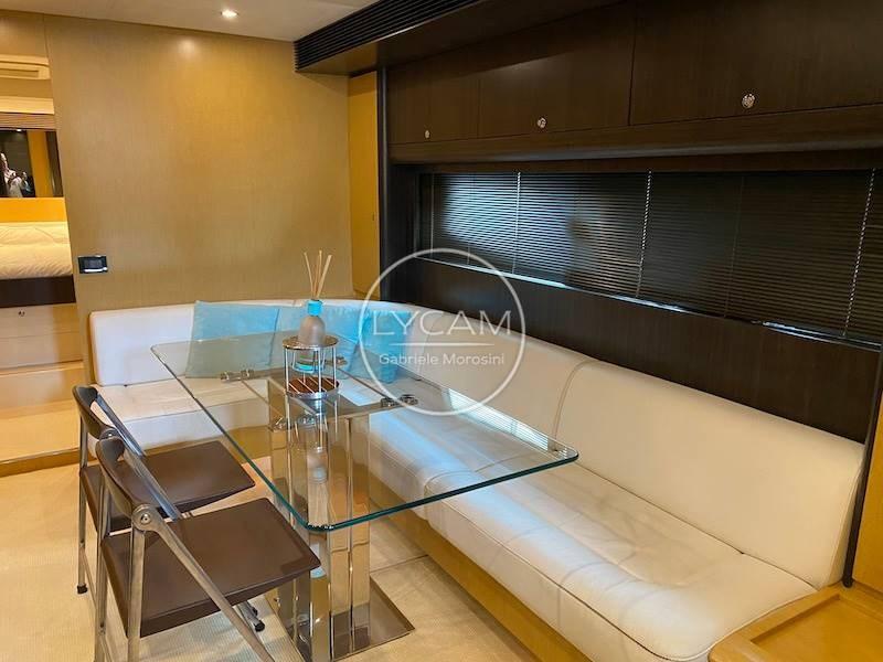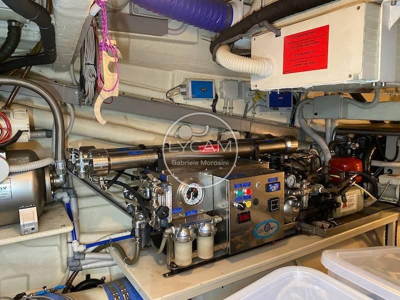 Couleur de la coque : Argenté brillant ; Climatisation chaud/froide ; Propulseur d’arc ; Watermaker ; Autoclave; Chaudière; Chargeur; Générateur; pont et plateforme en teck ; Douche dans le cockpit ; Échelle de nage ; passerelle hydraulique ; Racor ; Table de cockpit ; Amarrage par treuil ; Un guindeau électrique ; Feux de navigation ; Lumière profonde ; Lumières sous-marines ; Phare réglable ; Lumières LED du cockpit ; Ouverture électrohydraulique du garage ; 2 réfrigérateurs ; 1 congélateur, 1 cave à vin ; 4 plaques en céramique ; Micro-ondes; Lave-vaisselle; Hi-FI-CD-iPod, télévision stéréo ; Honda FB à tender 9,9 ch.