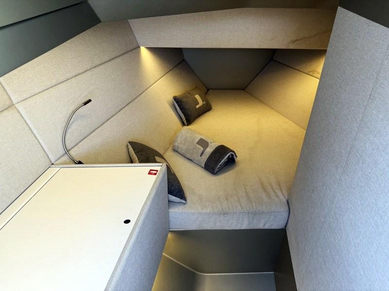 À l’intérieur, une cabine double avant avec une salle de bain de service a été aménagée.