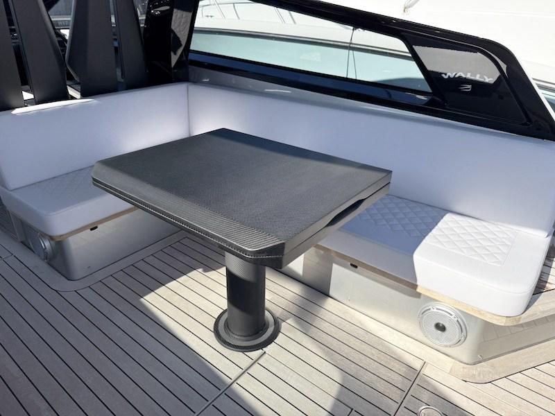 Feux de navigation ; Feu d’ancre ; Phare; Essuie-glaces en carbone ; Sirène; Treuil d’ancre électrique ; Encore; Bornes d’amarrage ; Plateforme de baignade en teck ; cockpit en teck ; Table de cockpit ; Douche dans le cockpit ; passerelle hydraulique ; balade stabilisateur Seakeeper (56 heures) ; générateur de mase 8,5 kW (200 heures) ; Coussins extérieurs pour terrasse ; Auvent arrière ; Onduleur 2 000 V ; Climatisation; Glacière 230V ; Équipement de sécurité (12 personnes) ; Piles; Chargeur; Déconnexion de batterie ; Prise 220V ; Demi-marin ; Enceintes à salle à manger ; Mât
