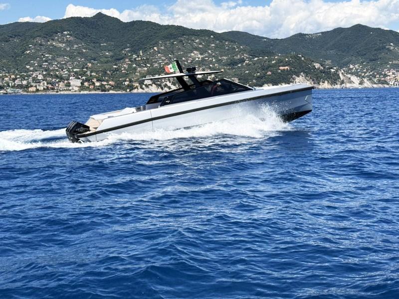 Les caractéristiques marquantes de ce bateau de jour sont la maniabilité extraordinaire grâce à la coque profonde en V extrêmement équilibrée et la polyvalence des espaces de cockpit qui, d’une salle à manger accueillante, peuvent être transformés en un grand beach club grâce aux remparts pliables qui permettent au propriétaire et aux invités de profiter de la vie en plein air en contact direct avec la mer.