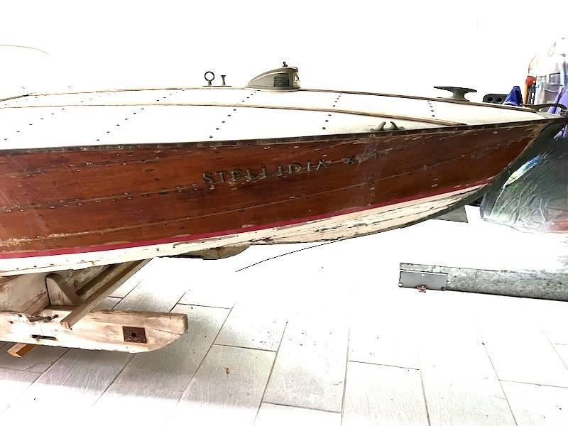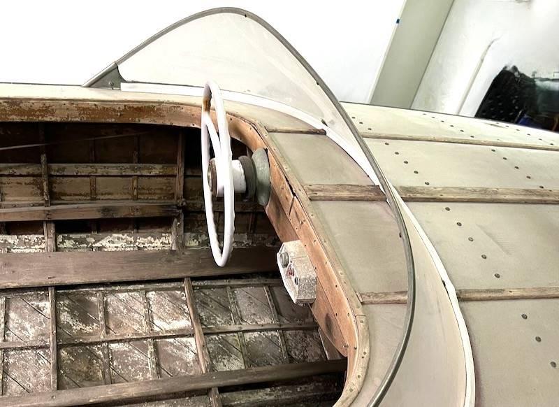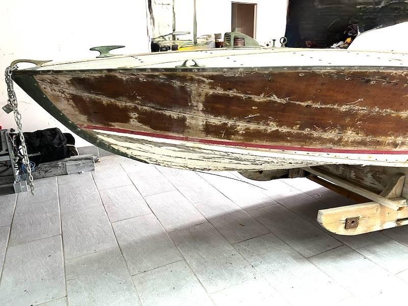 Ce modèle de bateau hors-bord Riva de 1937 est totalement à restaurer, une pièce de collection très rare, vendue sans moteur.