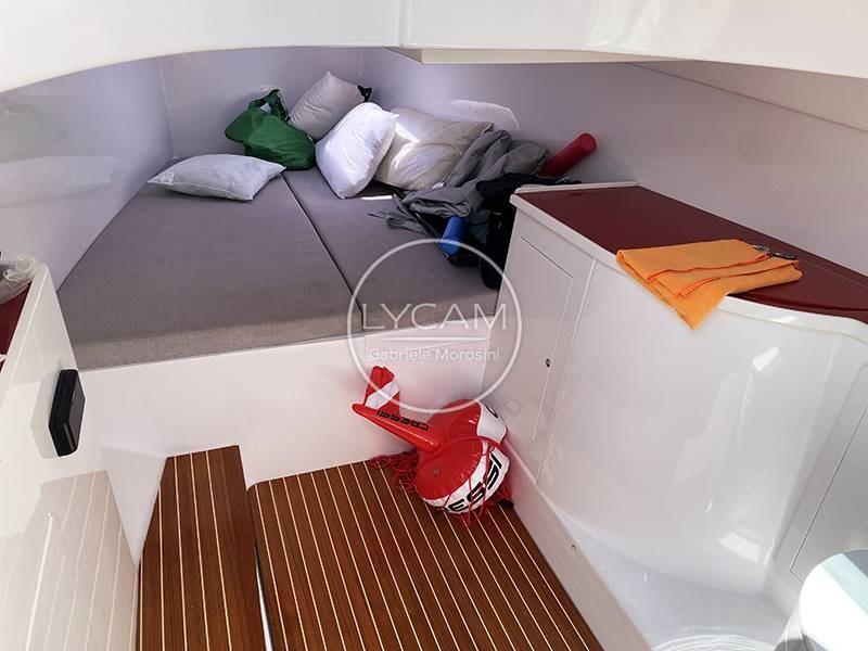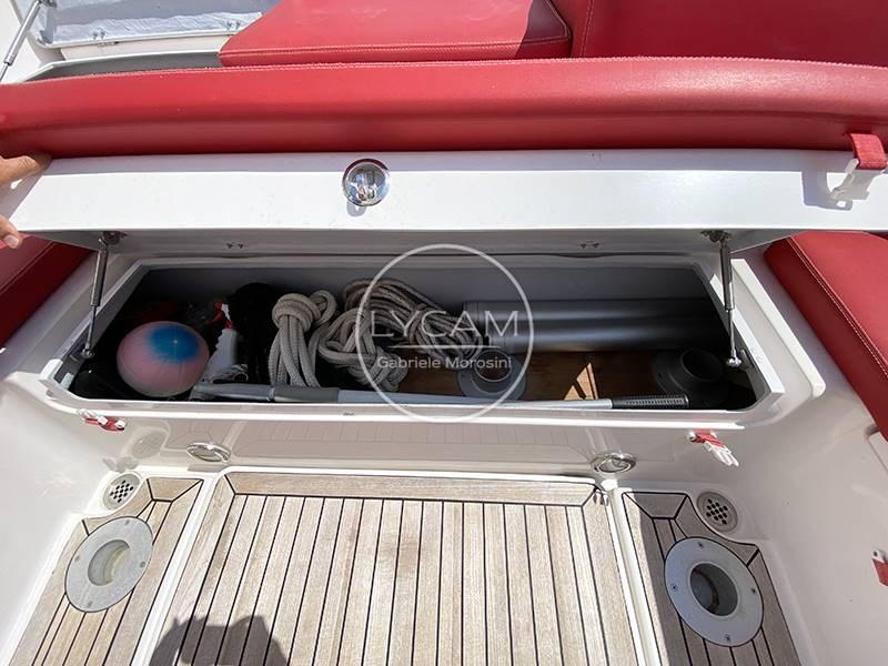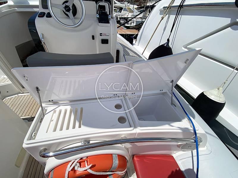 Feux de navigation ; Feu d’ancre ; Compteur en chaîne (Rapide) ; Télécommande à treuil ; Onduleur Marinco 12/700 ; Lumière LED à toit rigide ; Passerelle arrière sous-marine ; 4 piles (1 réfrigérateur permanent), 2 services d’autoclave ; Pompes de cale ; Échelle de nage ; Hi-Fi stéréo ; Des coussins de bronzage à la proue ; Équipement de sécurité ; Couler; Frigo; Auvent avec poteaux en carbone