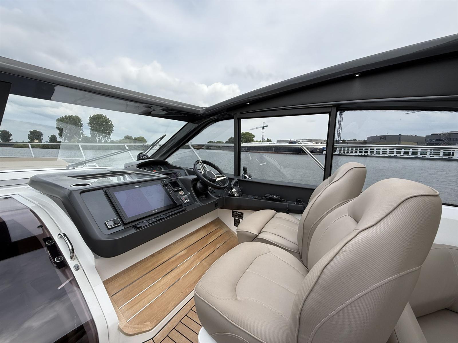 Désormais disponible, ce Princess V48 Open bien entretenu de 2015. Grâce à son design ouvert, vous pouvez profiter d’un espace de vie extérieur généreux avec un canapé en U spacieux et douillet et un grand canapé solaire à l’avant et à l’arrière. À la position de direction, il y a deux sièges complets pour le capitaine et le copilote. L’amarrage est facile grâce au joystick et au propulseur d’étrave. Le navire est équipé du système DPS de Volvo Penta, ce système maintient le bateau indépendamment sur sa position GPS. Idéal si vous devez attendre un pont, une écluse ou quand vous souhaitez vous amarrer. Avec le chauffage Webasto dans le cockpit, il reste confortable à bord de cette Princess élégante même lors des journées plus froides. Sous le pont, le navire offre un espace surprenant avec une disposition soignée et une finition de haute qualité. Deux cabines spacieuses avec salle de bain attenante garantissent un confort ultime tant pour le propriétaire que pour ses invités. La cabine du propriétaire couvre toute la largeur du bateau et offre beaucoup de lumière naturelle grâce aux fenêtres spacieuses.