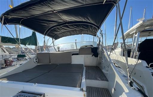 Une unité bien entretenue et équipée de nombreuses options: panneaux solaires (installés en 2022), propulseur d'étrave, passerelle hydraulique, taud de camping complet, GPS Garmin, etc.