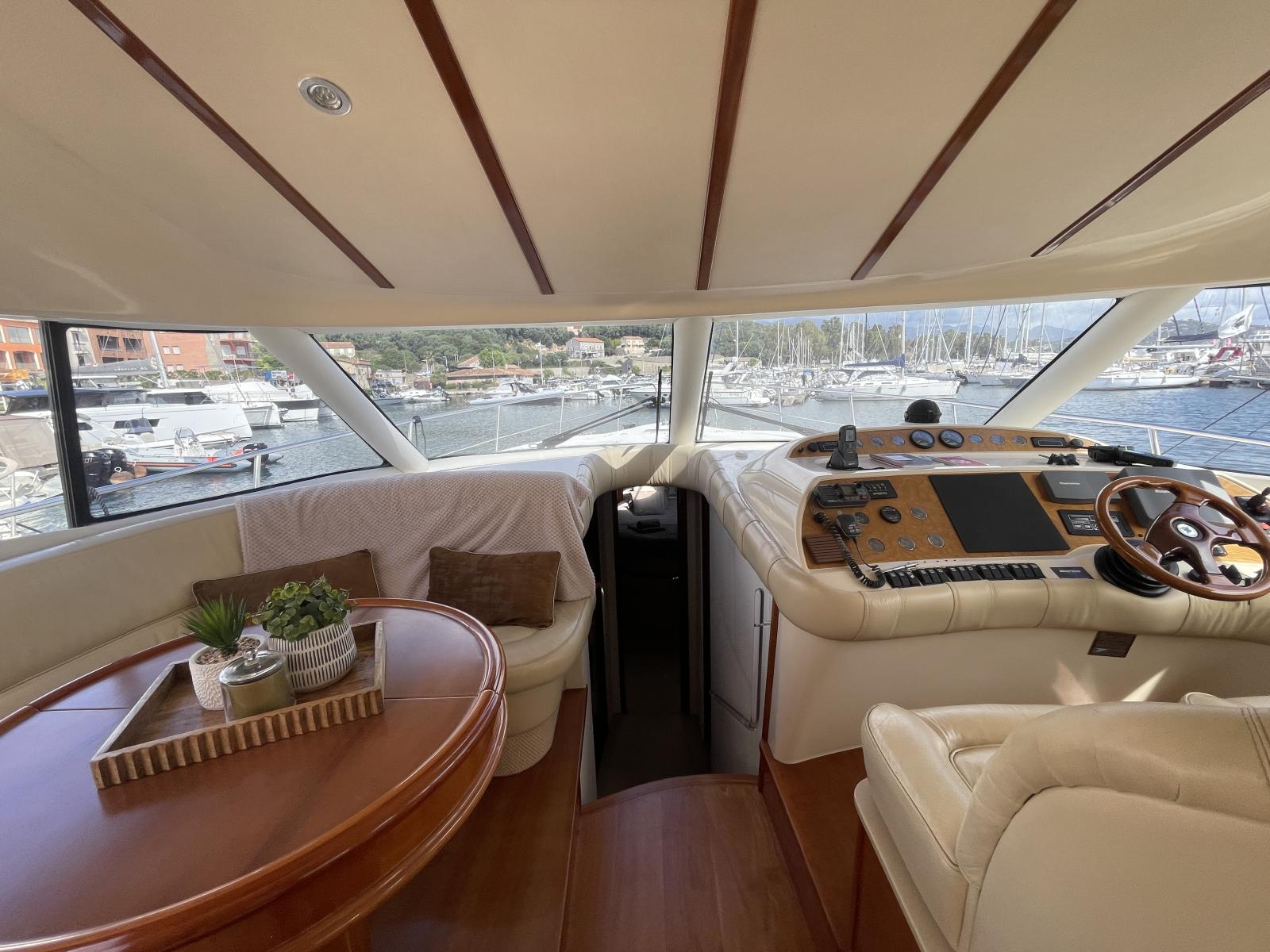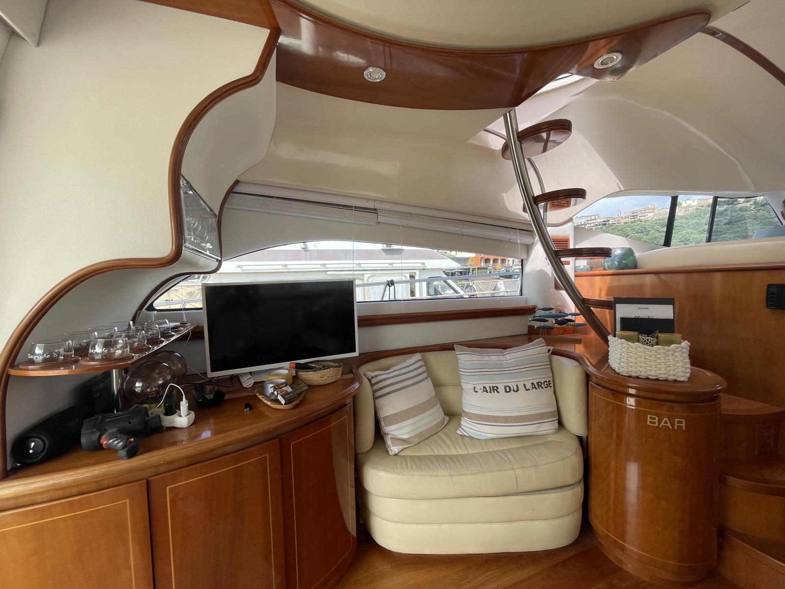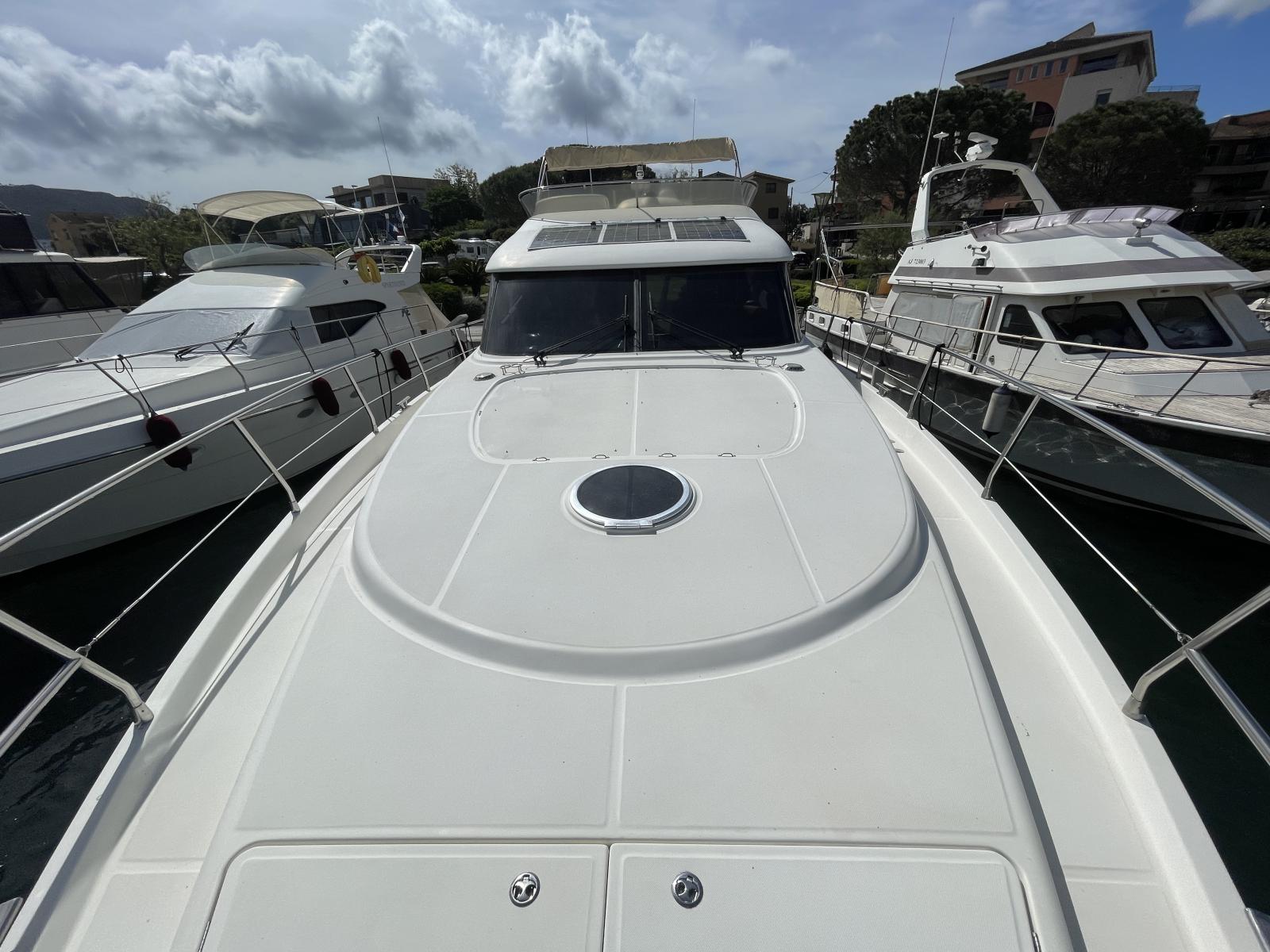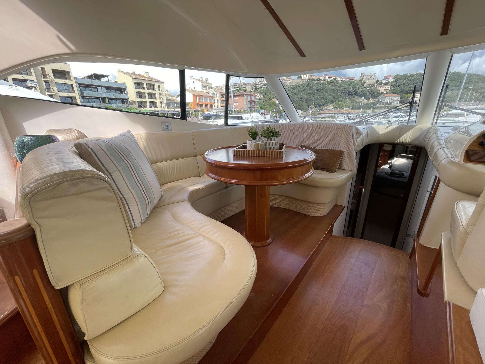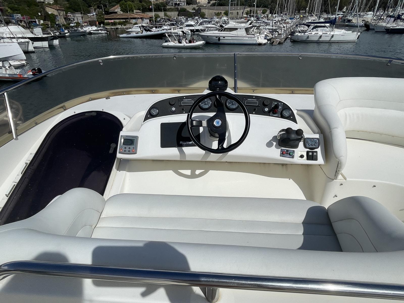 Le propriétaire actuel a fait des travaux de restauration: le faisceau électrique des moteurs a été complétement refait ainsi que la sellerie avant et sur le fly avec housses en éponge, et le bimini.