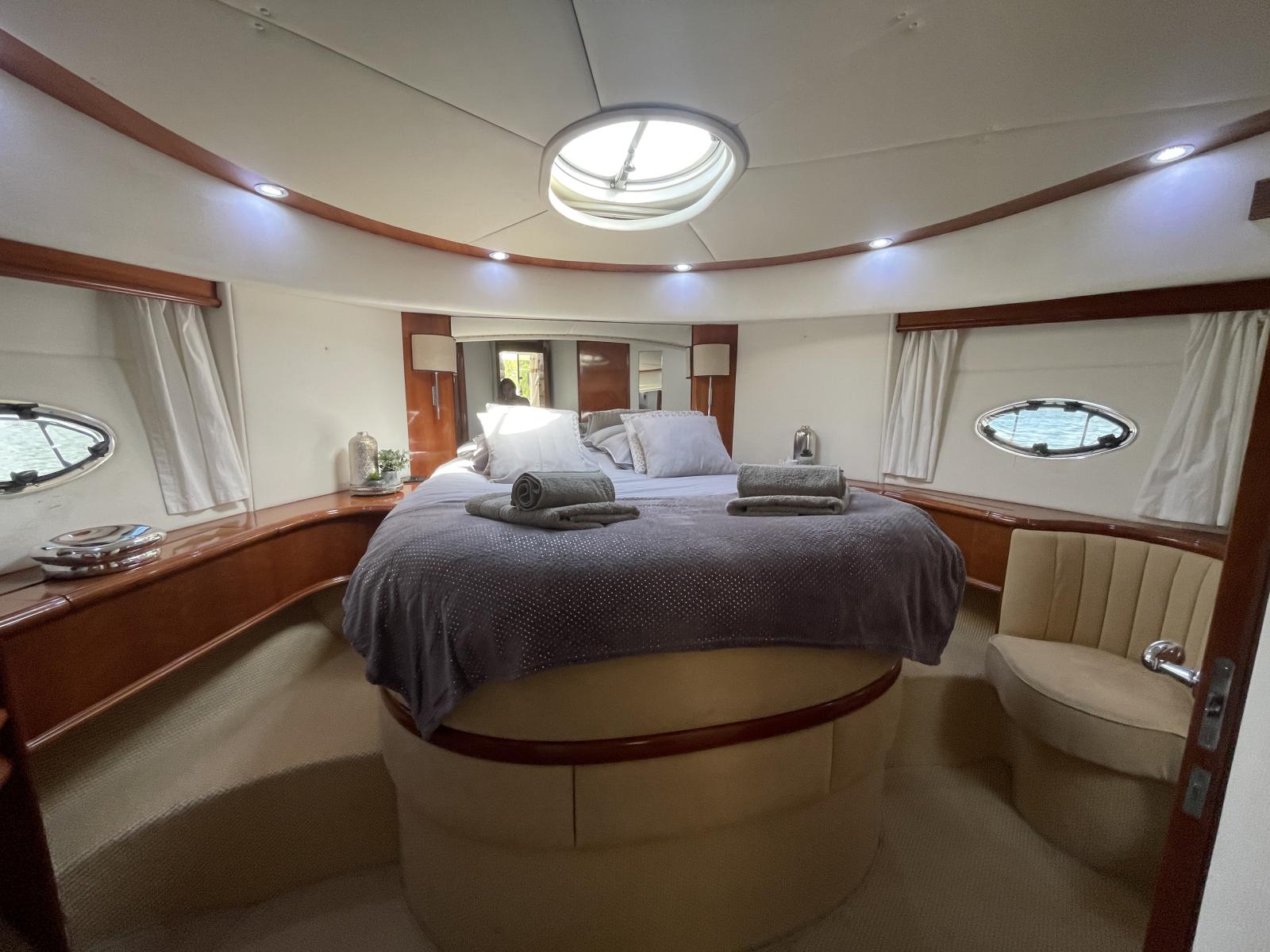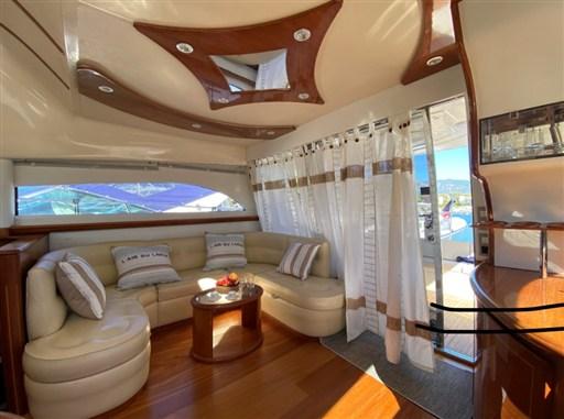 D’une longueur de 17.36 m, ce modèle 2003 est motorisé par Volvo Penta D12 (750 CV) .