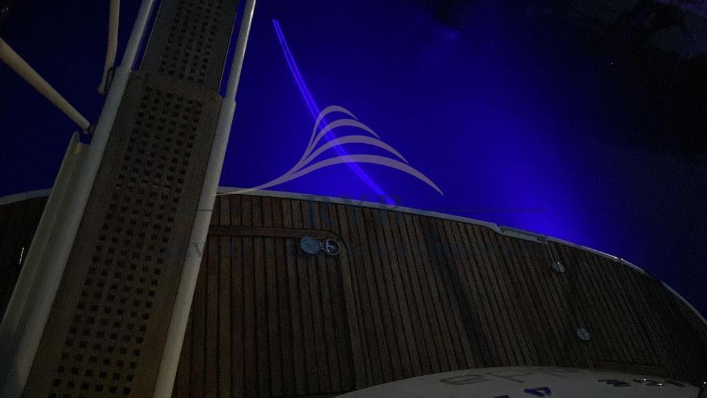 Ouverture du compartiment moteur électrique, Eau sous pression, Couleur spéciale, Douche de cockpit, Flaps hydrauliques, Garage à annexe, Hard top (APRIBILE), Lavabo dans le cockpit, Éclairage de courtoisie, Spots sous-marins, Passerelle, Plateforme arrière, Porte latérale, Cockpit en teck, Prise de quai, Guindeau électrique, table de cockpit.