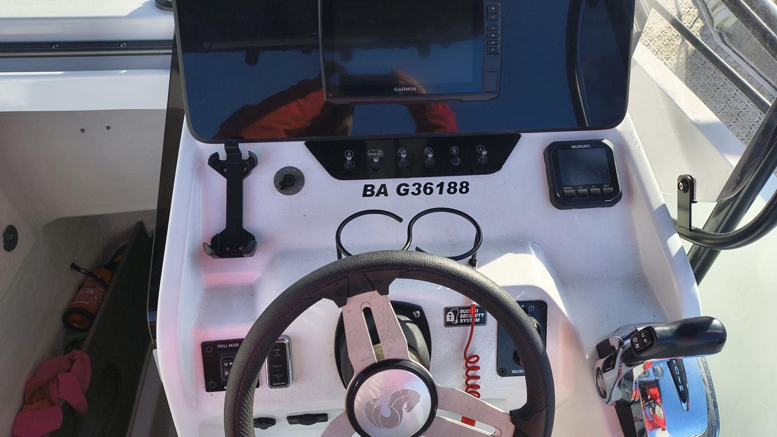 Version élégance confort couleur gris/cognac - Moteur Suzuki 350cv avec seulement 41h - Ecran garmin 9" sonde Garmin GT20 TM - VHF ASN AIS Navicom RT 850 AIS - Mat de ski.