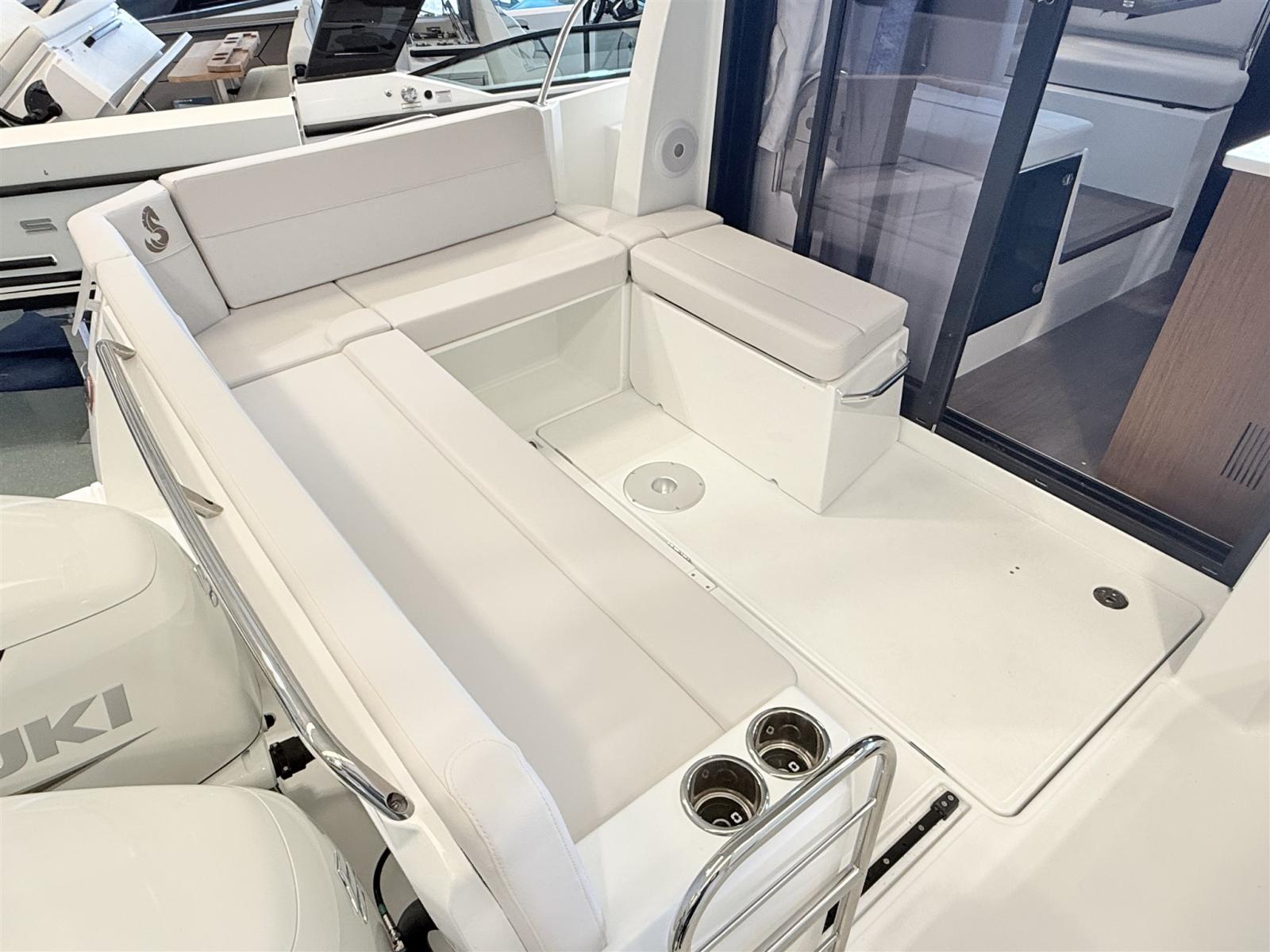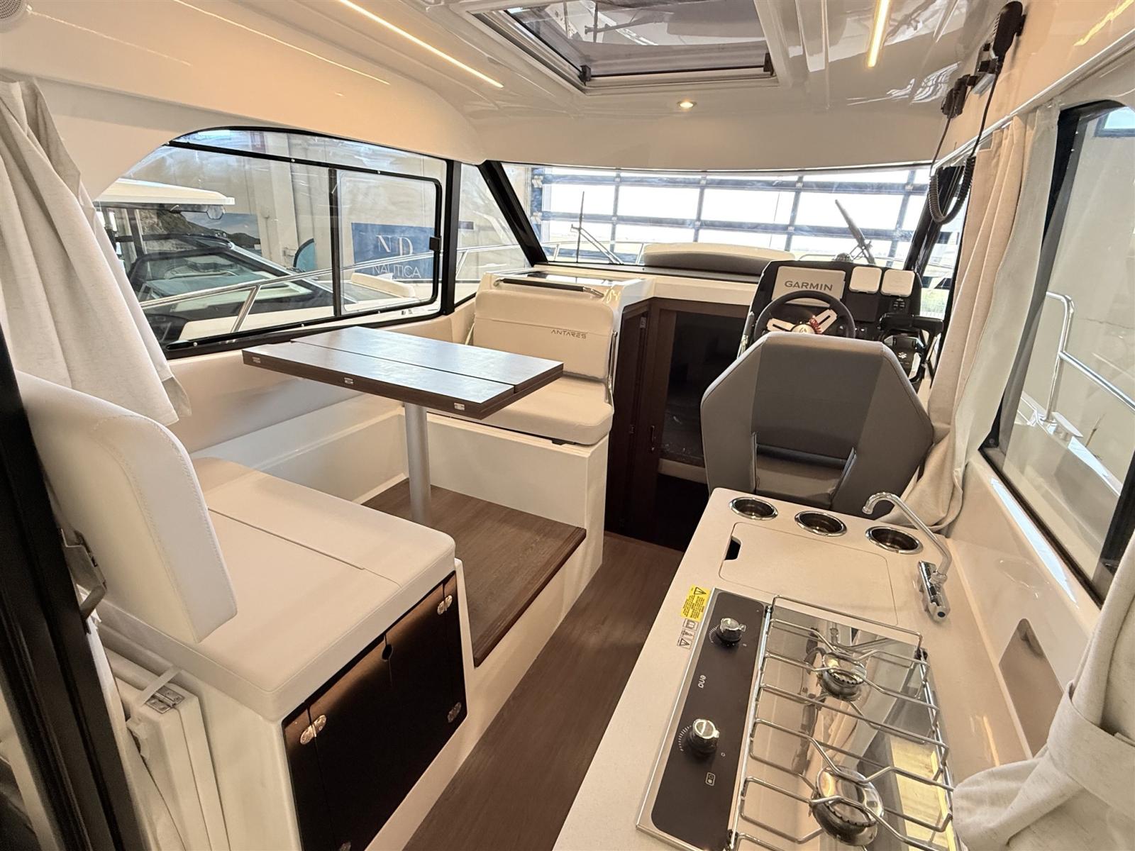 Alarme moteur, Eau sous pression, Douche de cockpit, Flaps électriques, Indicateurs de flaps, Éclairage de courtoisie, Plateforme arrière, Pompe de cale manuelle, Porte latérale, Prise de quai, Guindeau électrique, Echelle de bain, table de cockpit, Table pliante de salon, Corne.