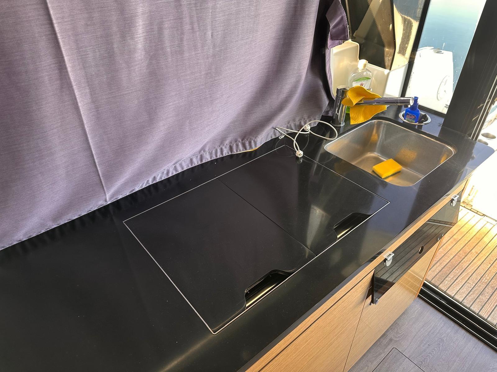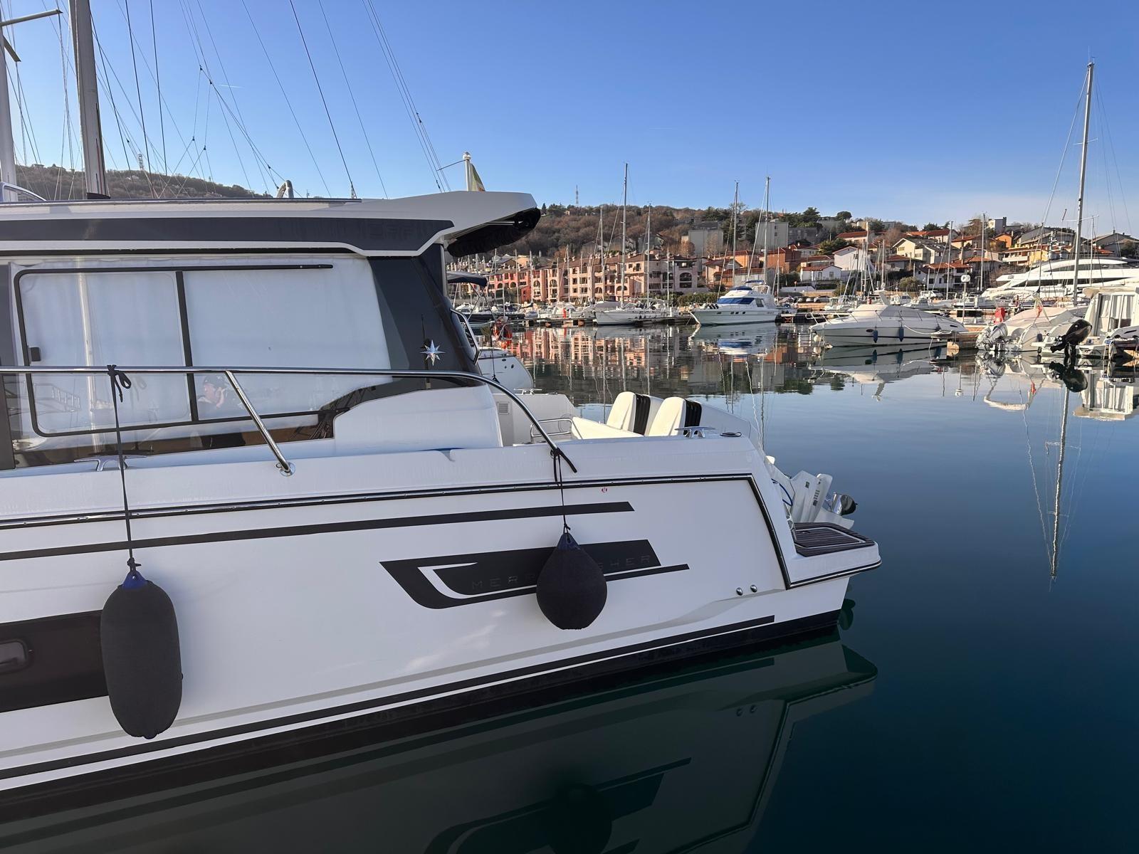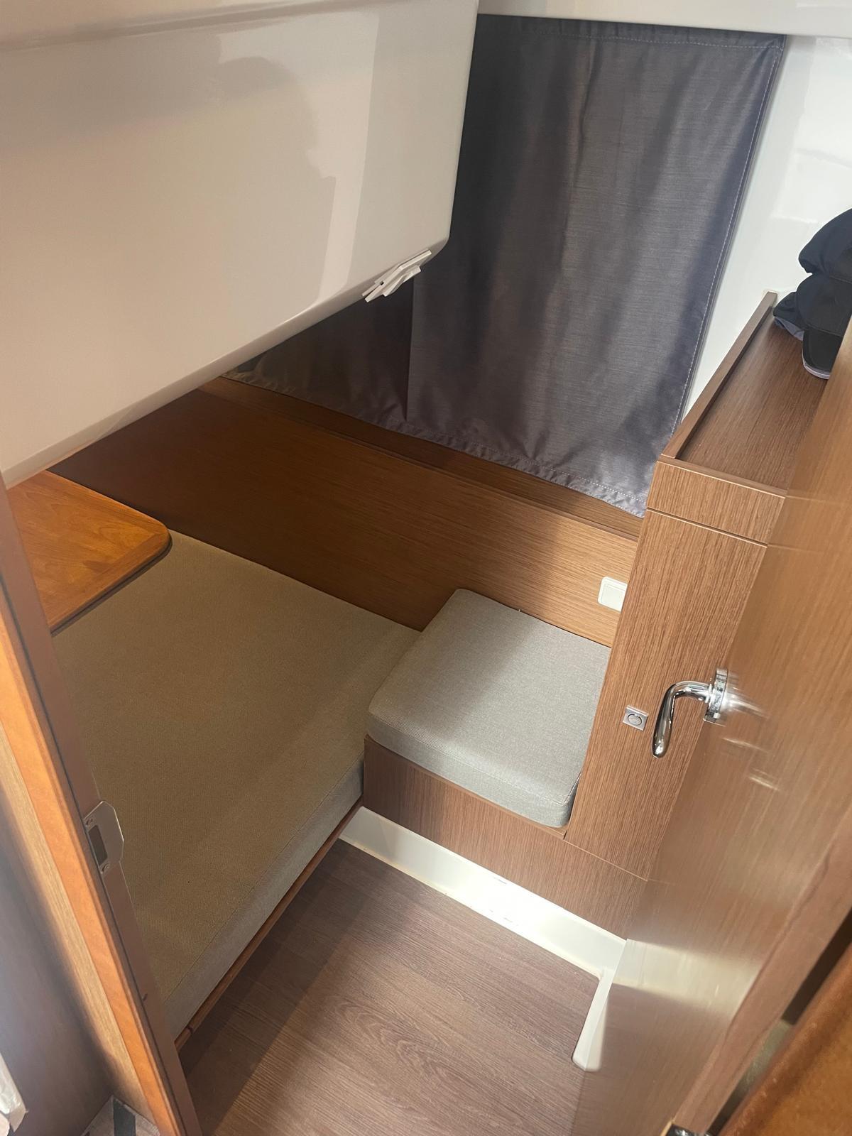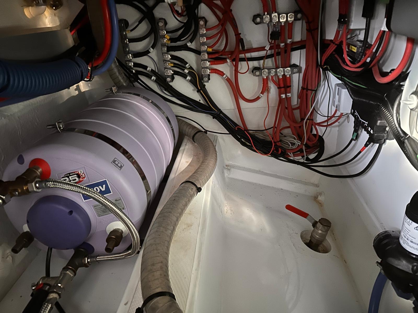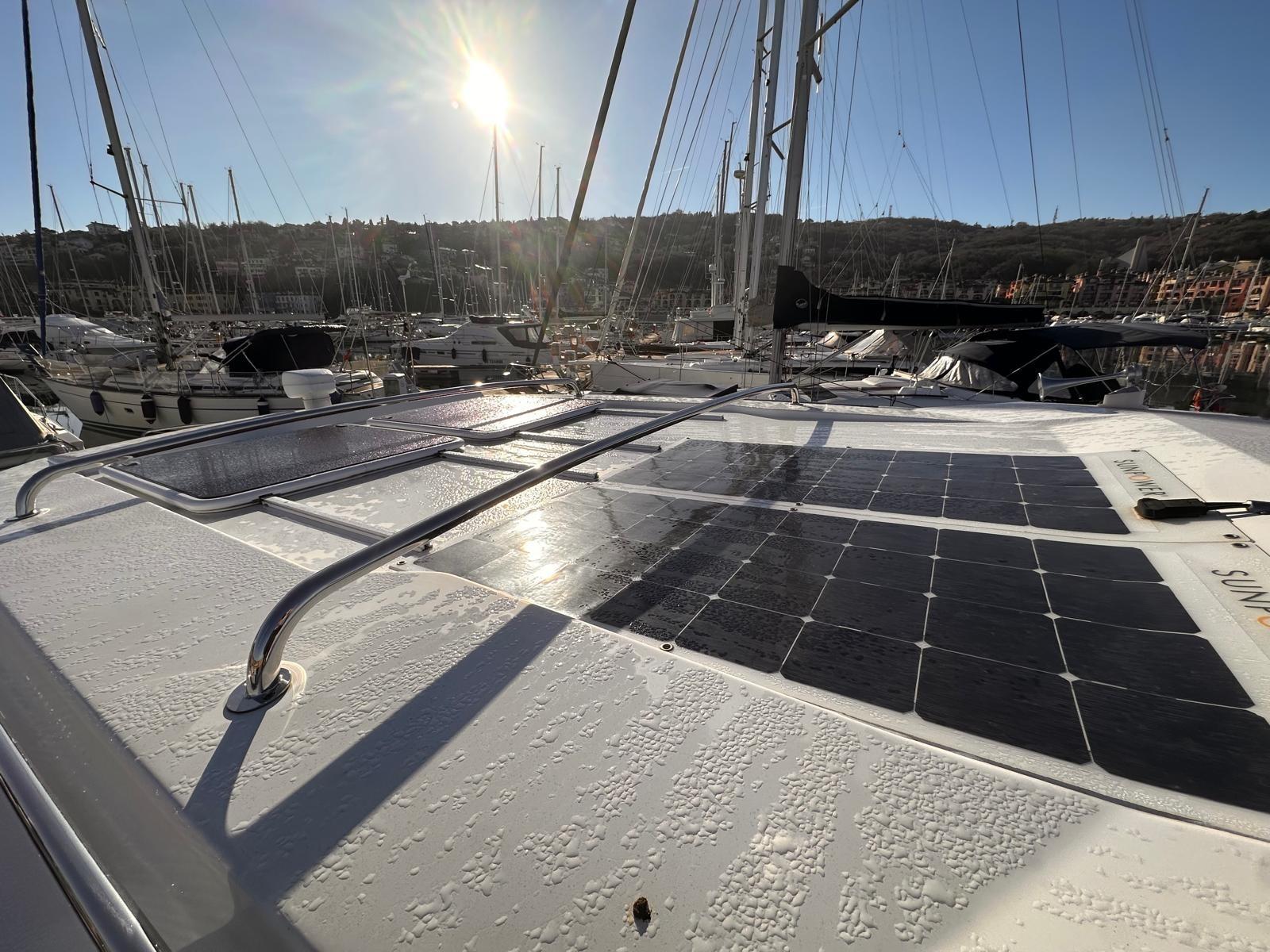 Alarme moteur, Alarme de pompe de cale, Eau sous pression, Passavant en teck, Douche de cockpit, Phare de poursuite, Flaps électriques, Indicateurs de flaps, Éclairage de courtoisie, Panneau solaire, Pompe de cale automatique, Porte latérale, Cockpit en teck, Prise de quai, Guindeau électrique, Echelle de bain, Corne.