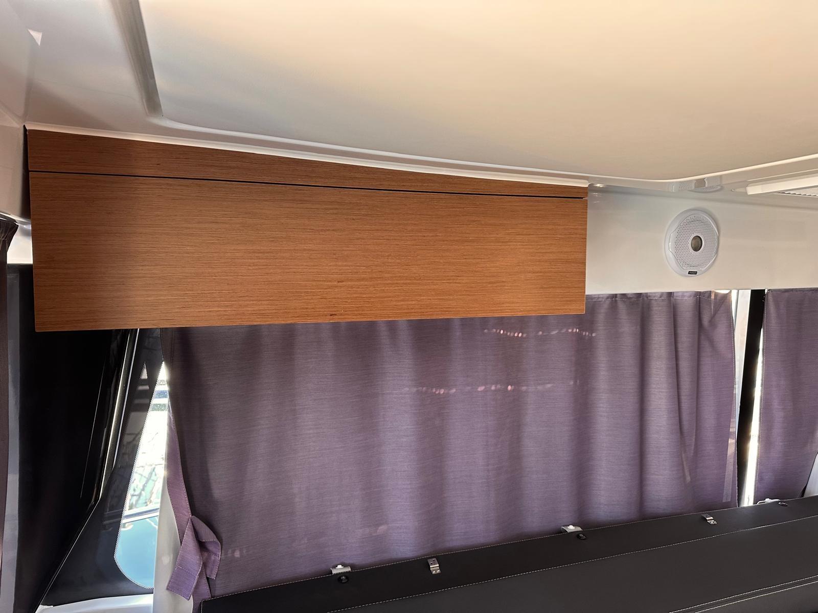 Ballon d'eau chaude, Convertisseur (1kw), Plancher intérieur en bois, Prises interieures 12v, Prises interieures 220v, Réservoir d'eau noire, Toilettes électriques.