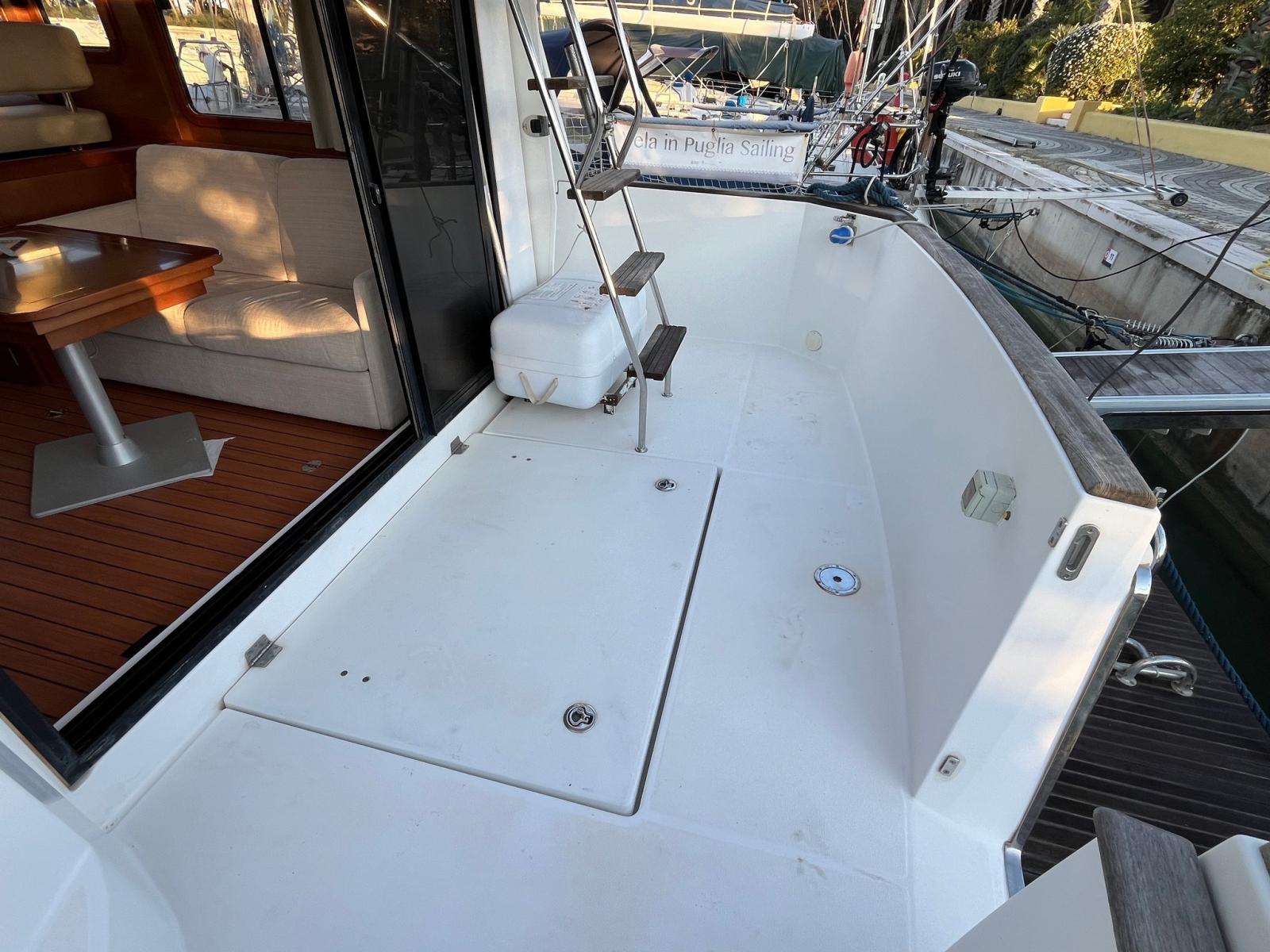 Bateau à un seul propriétaire ! Super équipé avec propulseur de poupe, propulseur d'étrave, passerelle hydraulique, chauffage Webasto, bimini sur le fly et électronique Raymarine avec radar et pilote automatique.