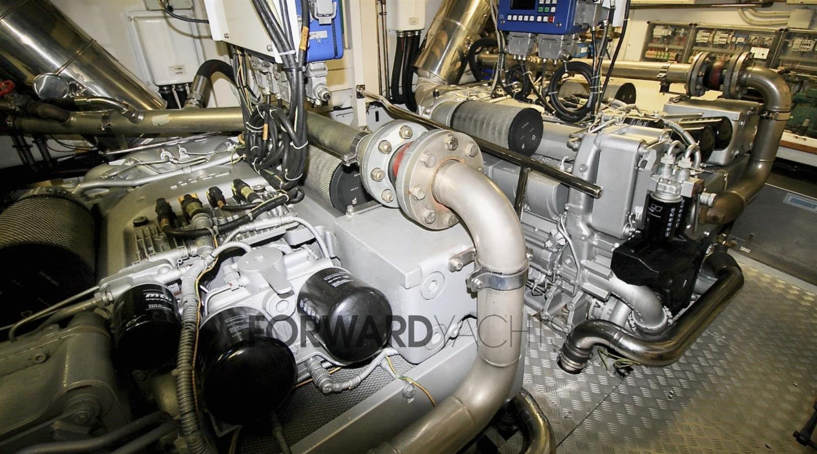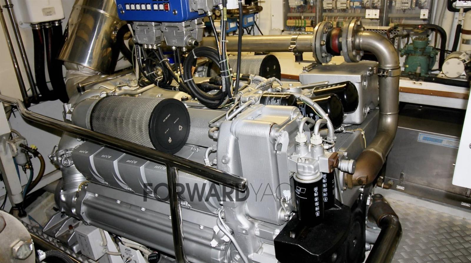 Propulsé par MTU et équipé d’un propulseur d’étrave et de poupe, d’un dessalinisateur léger sous-marin, d’un teck neuf, d’un hard top électrique.