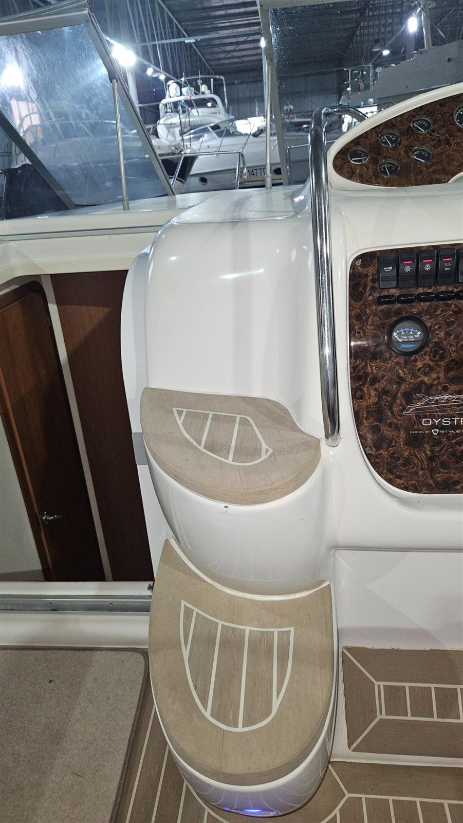 Alarme moteur, Eau sous pression, 4 Batteries, Couleur spéciale (Fiancate blu), Douche de cockpit, Flaps hydrauliques, Extincteur(s) fixe(s) (Automatico in sala macchine), Indicateurs de flaps, Éclairage de courtoisie, Plateforme arrière (di poppa con teack), Pompe de cale automatique, Cockpit en teck, Prise de quai, Connexion eau sous pression à quai, Rollbar, Guindeau électrique, Echelle de bain, Corne.