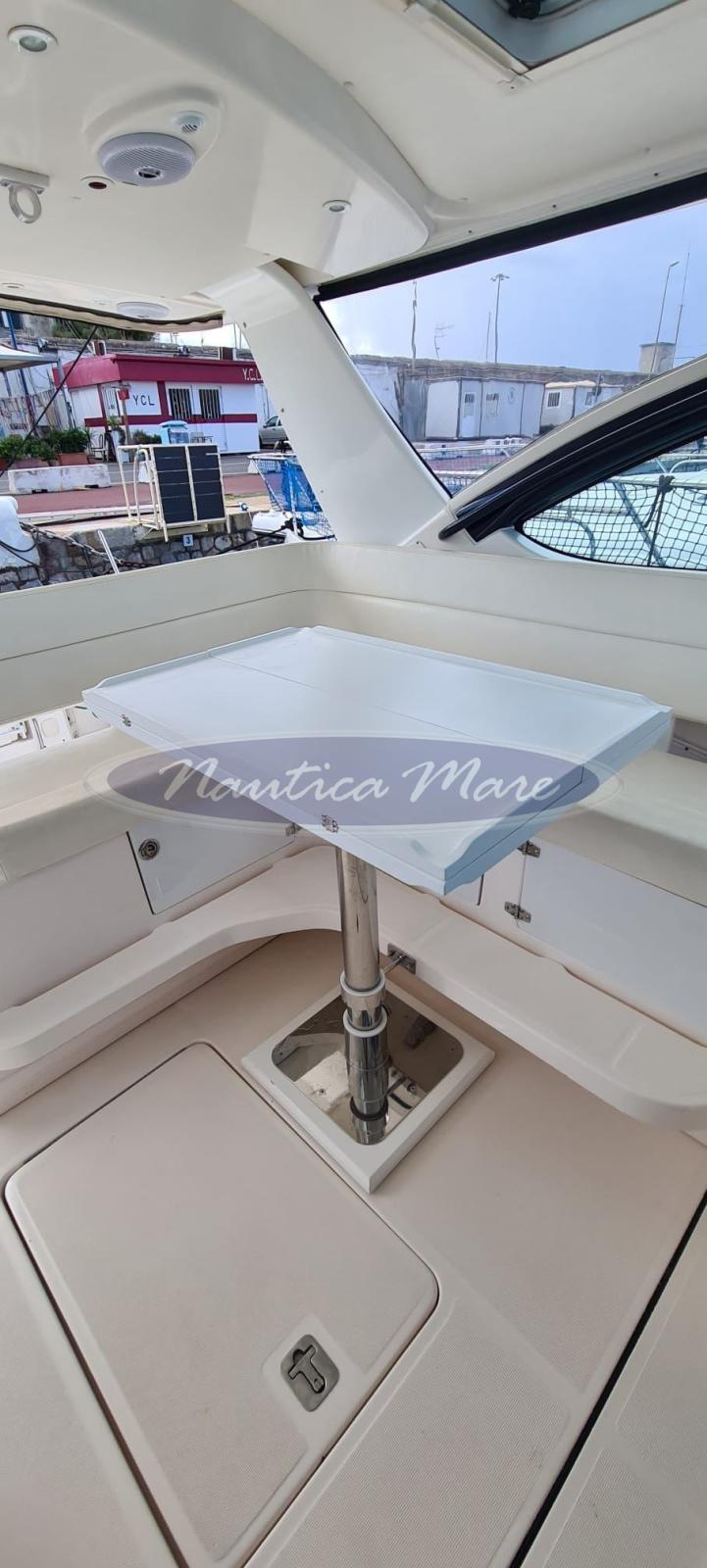 Alarme gaz, Alarme moteur, Alarme de pompe de cale, Ouverture du compartiment moteur électrique, Eau sous pression, Système de vidange, Douche de cockpit, Phares fixes arrière, Flaps hydrauliques, Hard top, Extincteur(s) fixe(s), Lavage de chaine, Lavabo dans le cockpit, Éclairage de courtoisie, Passerelle (carbonio manuale), Plateforme arrière, Pompe de cale automatique, Prise de quai (con avvolgicavo elettrico), Connexion eau sous pression à quai, Rollbar, Guindeau électrique, Echelle de bain, table de cockpit, Table pliante de salon, Annexe (2,65 mt. chiglia gonfiabile + Mercury 3,5 hp), Corne, Winch électrique avant.