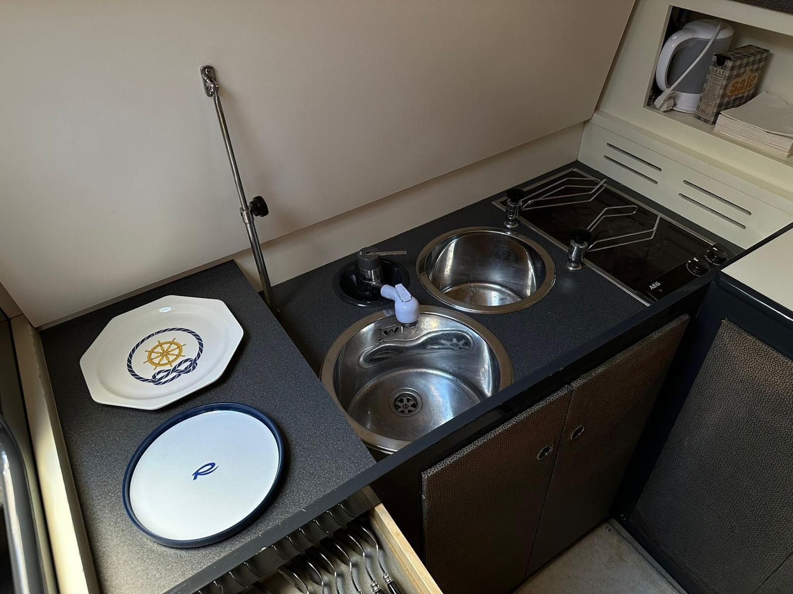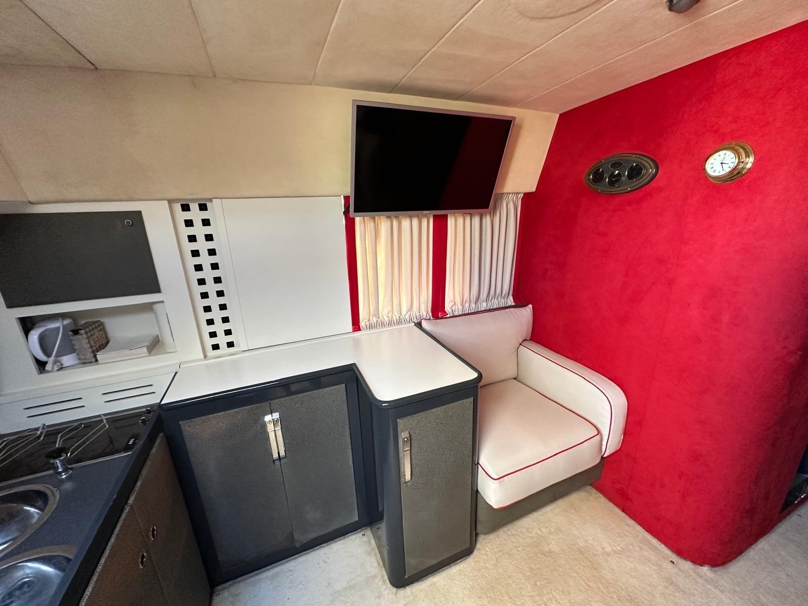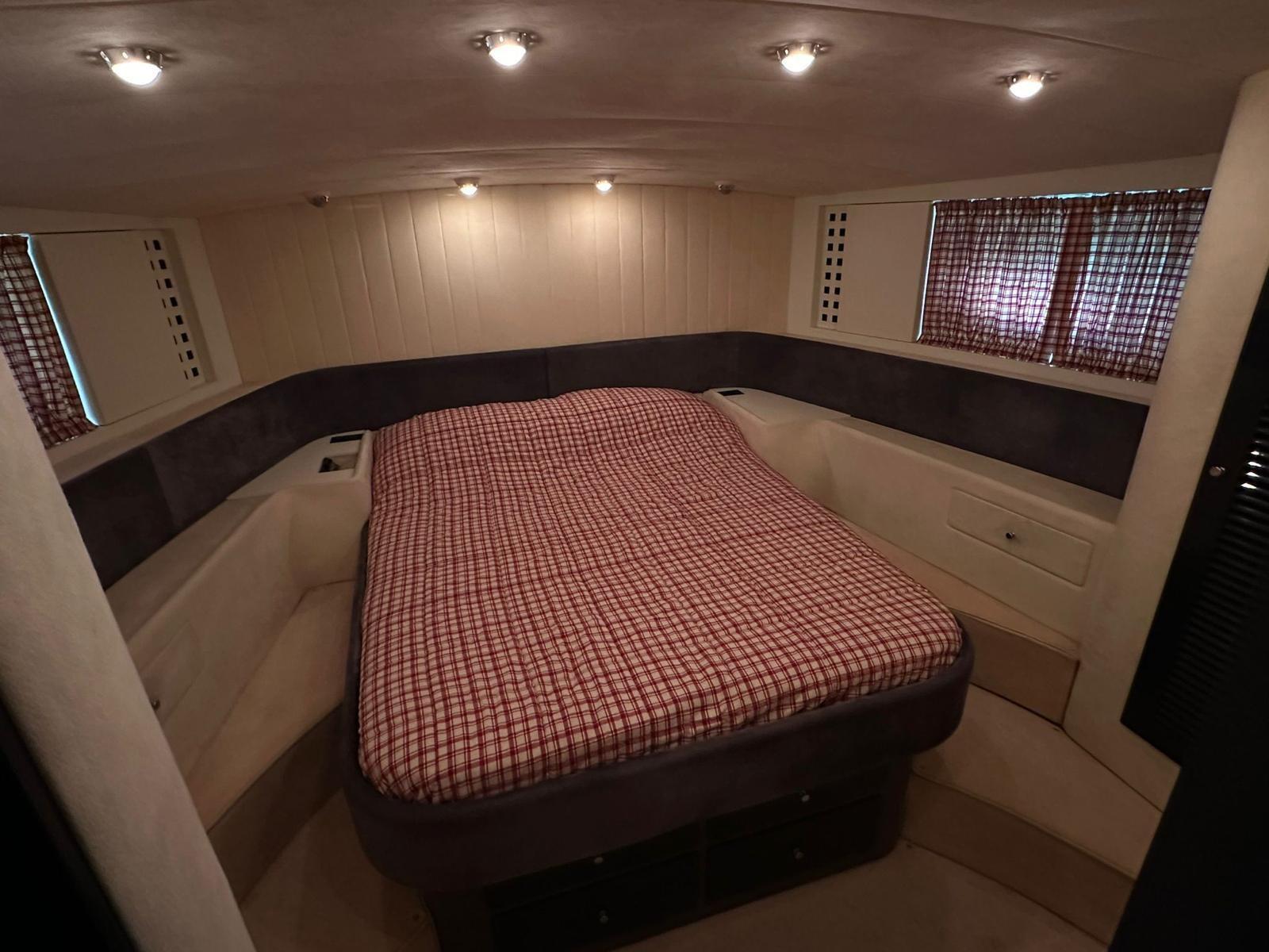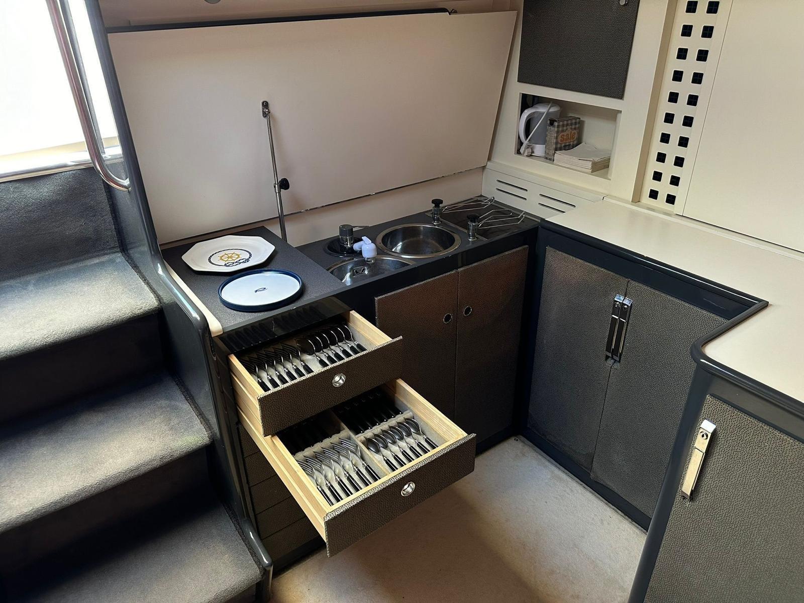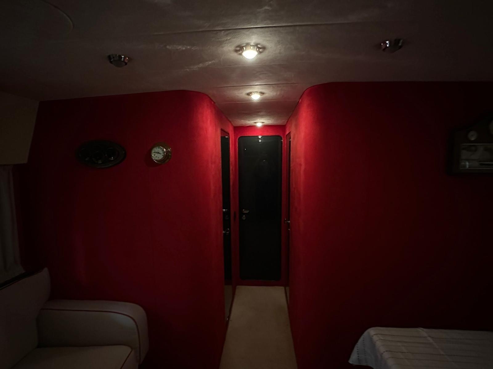Alarme moteur, Alarme de pompe de cale, Eau sous pression, Couleur spéciale (SCAFO ROSSO), Douche de cockpit, Phare de poursuite, Flaps électriques, Lavage de chaine, Lavabo dans le cockpit, Éclairage de courtoisie, Passerelle, Plateforme arrière, Pompe de cale automatique, Pompe de cale manuelle, Porte latérale, Prise de quai, Onduleur, Rollbar, Guindeau électrique, Echelle de bain, table de cockpit, Corne.