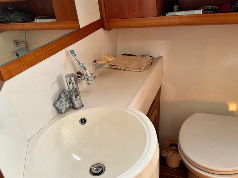 L’équipement de navigation est entièrement récent, comprenant GPS, radar, pilote automatique, VHF et sondeur, pour des croisières en toute sécurité et sérénité. À bord, vous trouverez un intérieur chaleureux avec sellerie et boiseries en excellent état, un carré convivial, une cuisine équipée et des cabines confortables. Le confort est renforcé par la présence d’un groupe électrogène, de la climatisation et du chauffage. Les sanitaires ont été modernisés avec un WC électrique installé en 2022.