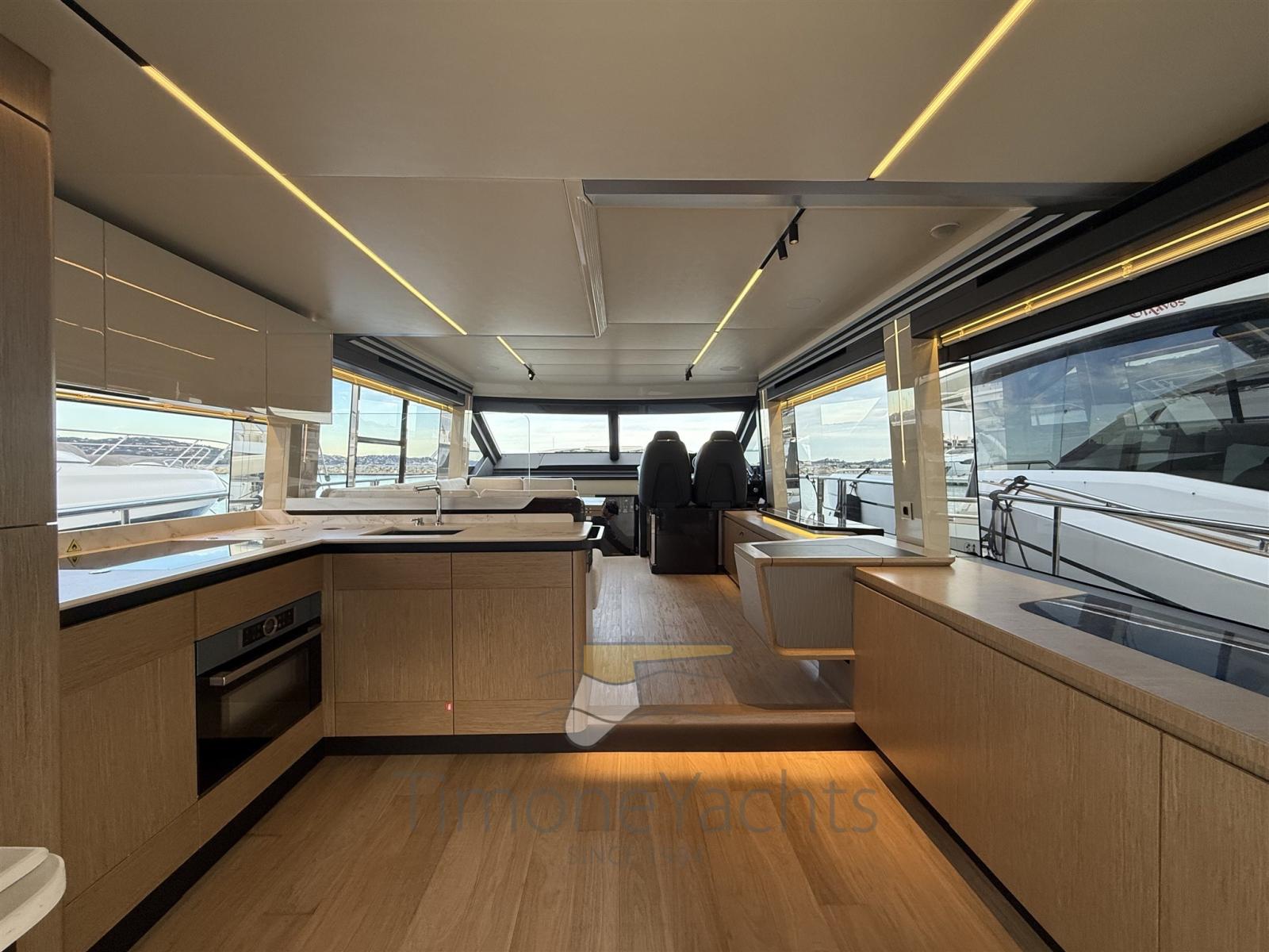 Alarme gaz, Alarme moteur, Alarme de pompe de cale, Alternateur, Auto Dynamic Trim Interceptor, Eau sous pression, Passavant en teck, Câble d’alimentation à quai, Douche de cockpit, Double barre à roue, Flaps électriques, Hard top, Indicateurs de flaps, Lavage de chaine, Lavabo dans le cockpit, Éclairage de courtoisie, Passerelle, Plateforme arrière, Pompe de cale automatique, Pont en teck, Porte latérale, Porte latérale, Cockpit en teck, Prise de quai, Connexion eau sous pression à quai, Echelle de bain, Stabilisateurs (Seakeeper), table de cockpit, Corne, Winch électrique arrière, Winch électrique avant.