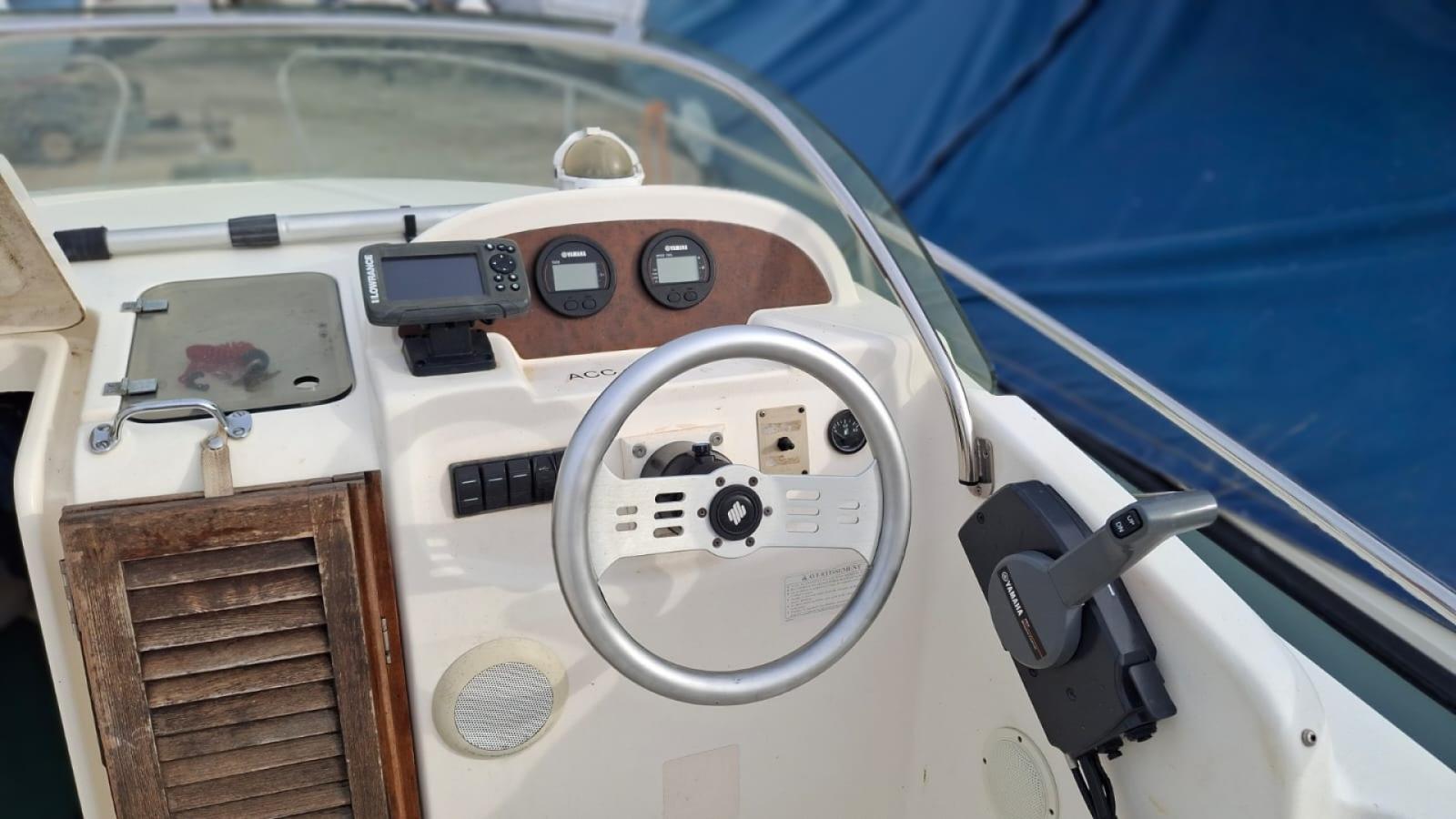 Table, taud de soleil, de 2024 douchette, sondeur Garmin, bain de soleil, sellerie en bon état.