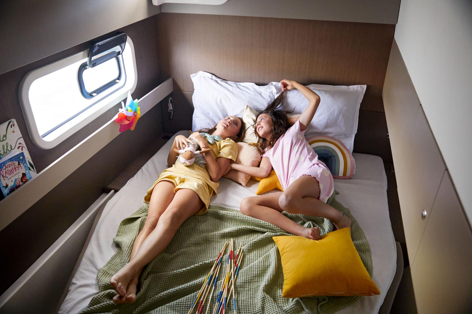 Le CATSPACE est un catamaran de 40 pieds regroupant les innovations de la maison BALI. Ses étraves inversées, éléments de signature des modèles BALI, offrent un design affirmé. Le pontage intégral permet une circulation fluide entre les différents espaces et une aisance de déplacement en navigation. La « porte BALI », amplifie l’espace de vie dans le carré-cockpit. Grâce aux grandes baies vitrées, la lumière s’invite à l’intérieur du bateau.