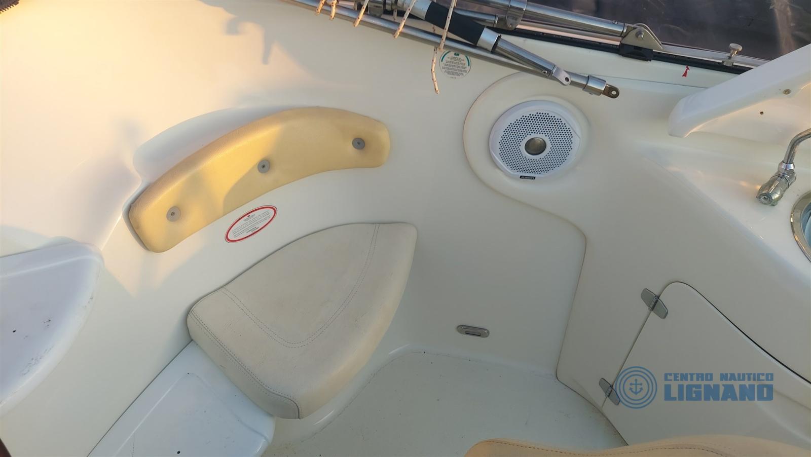SYSTÈMES : Système électrique 12V, système stéréo fusion avec apliqueurs Hertz, 4 haut-parleurs externes surdimensionnés, chargeur de batterie, système double batterie, câble de terre 12A, interrupteur de batterie 4 voies, disjoncteur avec thermique général, pompe de cale, chaudière à eau, panneaux d’insonorisation, filtres de carafe à essence, treuil électrique, volets électrohydrauliques,
