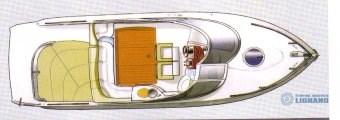 Un bateau de haute qualité avec une longueur totale de 8,50, beaucoup d’espace pour bronzer à la poupe, une table au centre du bateau pour 5 personnes, des intérieurs de cabine avec 2 lits et une salle de bain cachée.