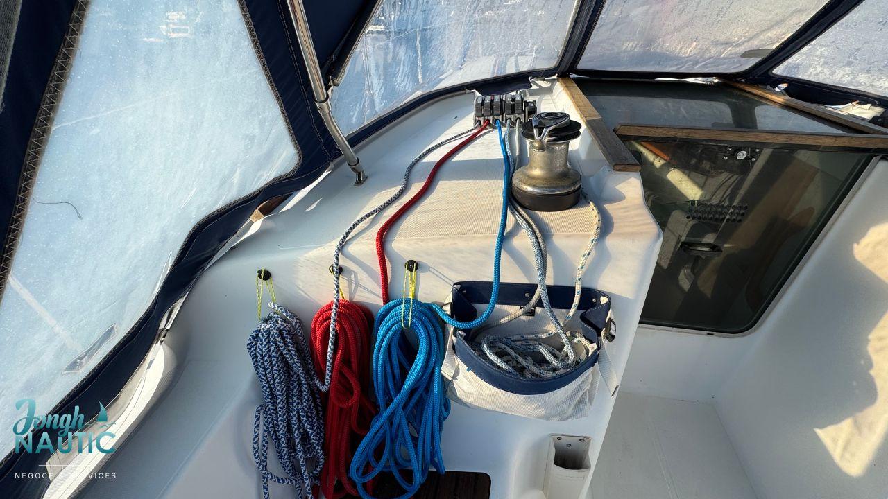 Bateau vendu avec tout l’équipement pour naviguer ( Sécurité, gilets , harnais ... et vaisselle )