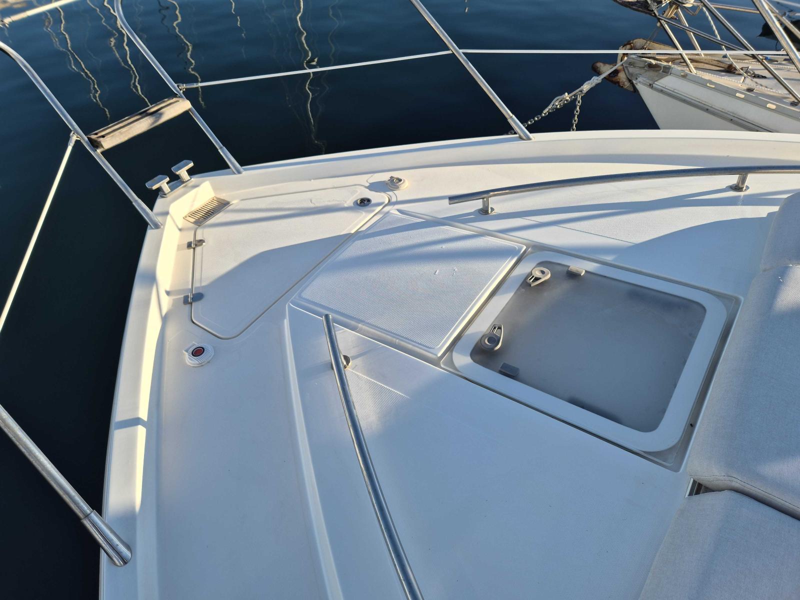 Le SC 35 se distingue par ses grandes surfaces vitrées, son profil élancé et son hardtop ouvrant, offrant une belle luminosité à bord et une silhouette moderne. L’aménagement extérieur est pensé pour le confort et la convivialité, avec de généreux espaces pour se détendre ou recevoir.