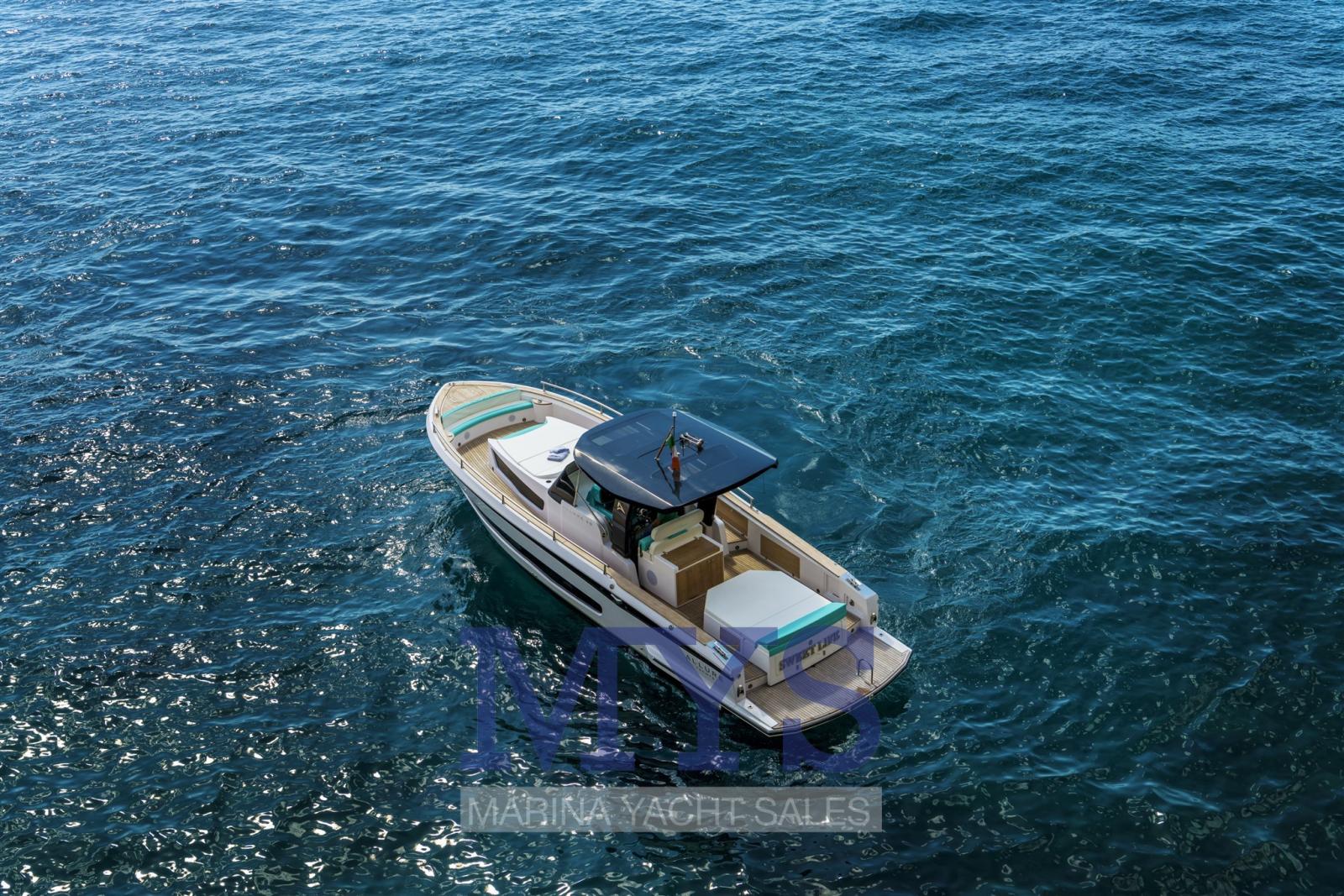 L’Italiure 38 est une élégante nouvelle génération de promenade, conçue pour allier confort, performance et style dans un esprit pur italien. Avec une longueur totale d’environ 11,70 mètres, il offre un espace généreux aussi bien sur le pont que sous le pont. L’aménagement est conçu pour garantir une agréable qualité de vie extérieure maximale, avec de grandes terrasses solaires, un espace de repas et une cuisine extérieure. L’intérieur peut accueillir jusqu’à 4 personnes pour la nuit, avec une cabine double et une salle de bain séparée. Équipé de moteurs diesel à l’intérieur, il offre d’excellentes performances tout en maintenant une faible consommation de carburant. Idéal pour des croisières en famille ou des journées de détente et de mer.