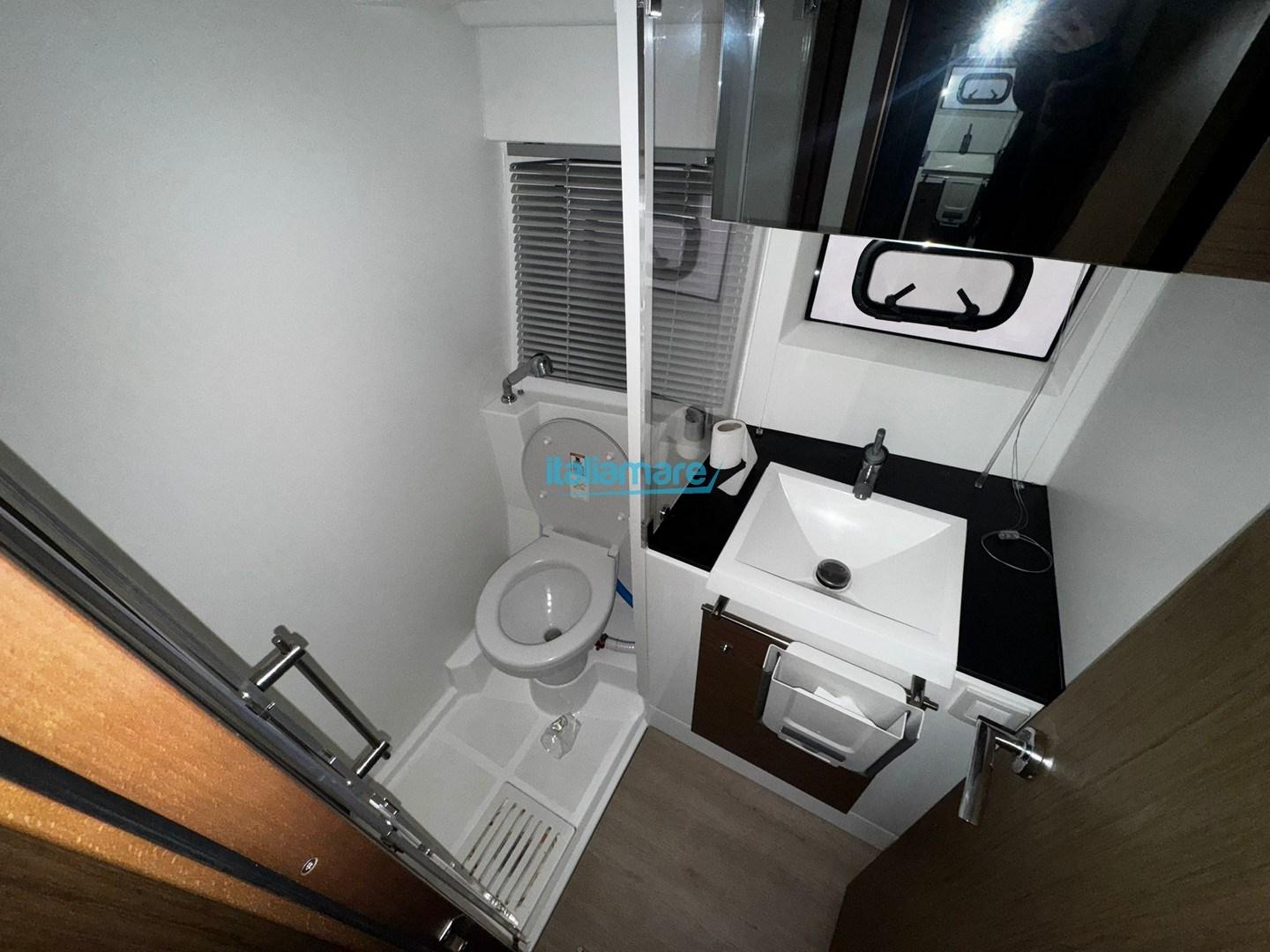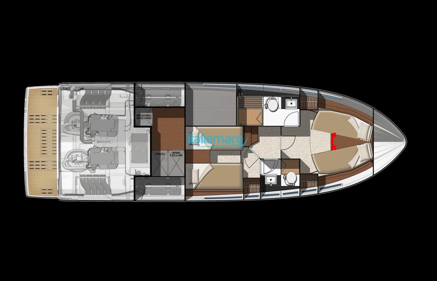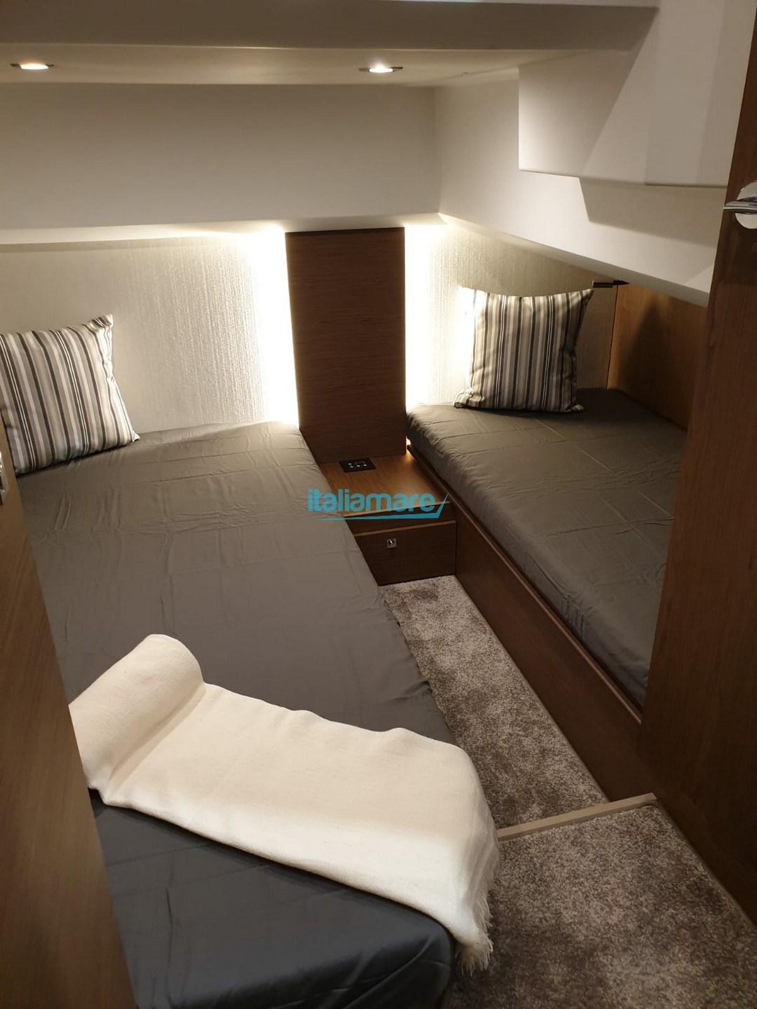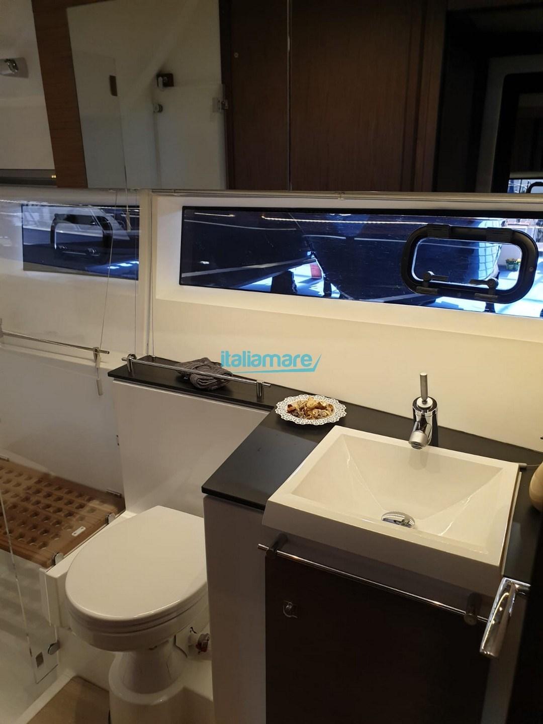 Accessoires principaux : Climatisation - Passerelles latérales en teck - GPS - Joystick - Pilote automatique - Couleur grise spéciale - Propulseur avant - Passerelle - Plateforme hydraulique - Table de cockpit - Teck dans le cockpit - Chaîne stéréo - TV